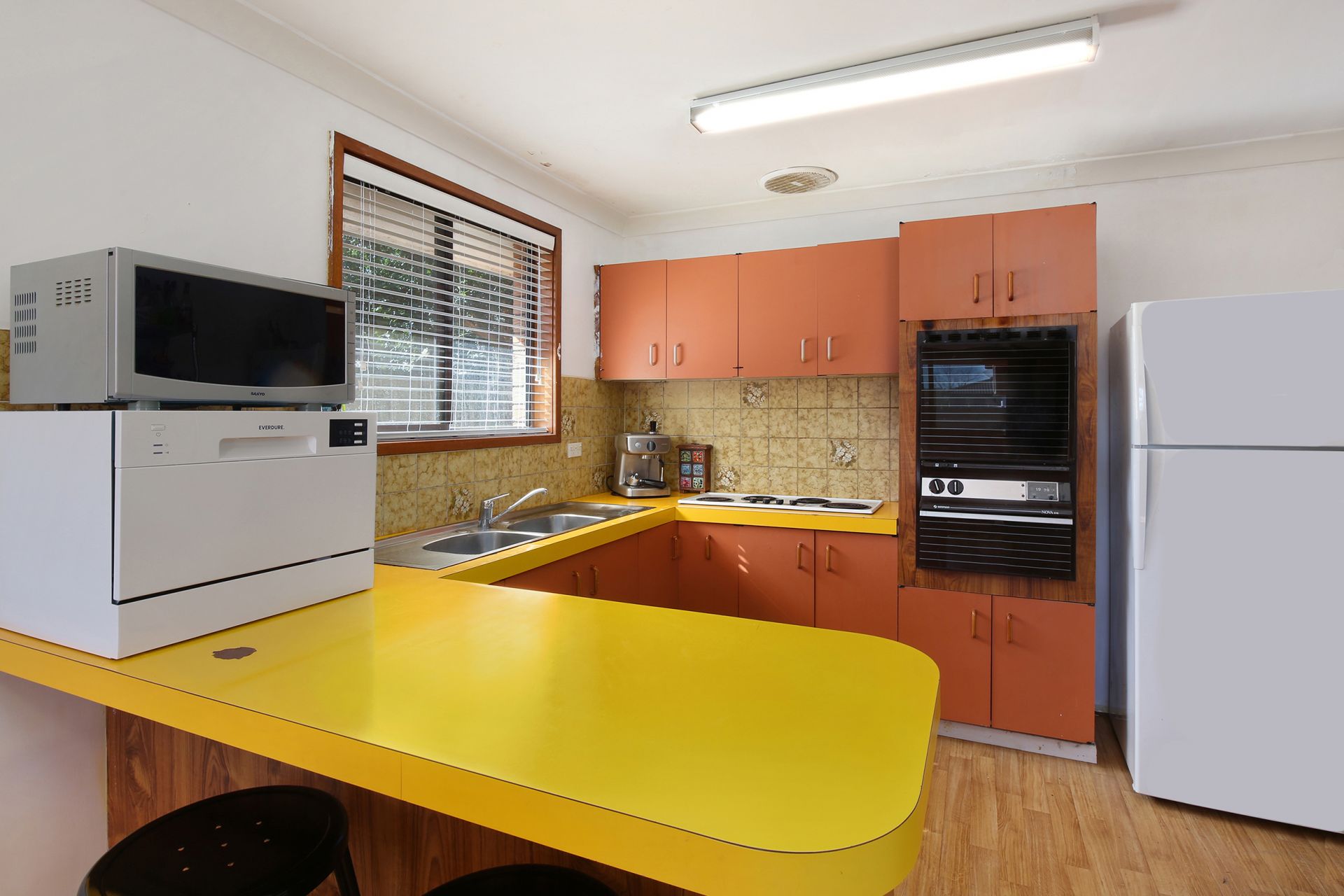 The generous sized main living room is located off the entry and leads to the kitchen and dining space. This original kitchen is spacious and has a lovely outlook to the sunny, private courtyard.