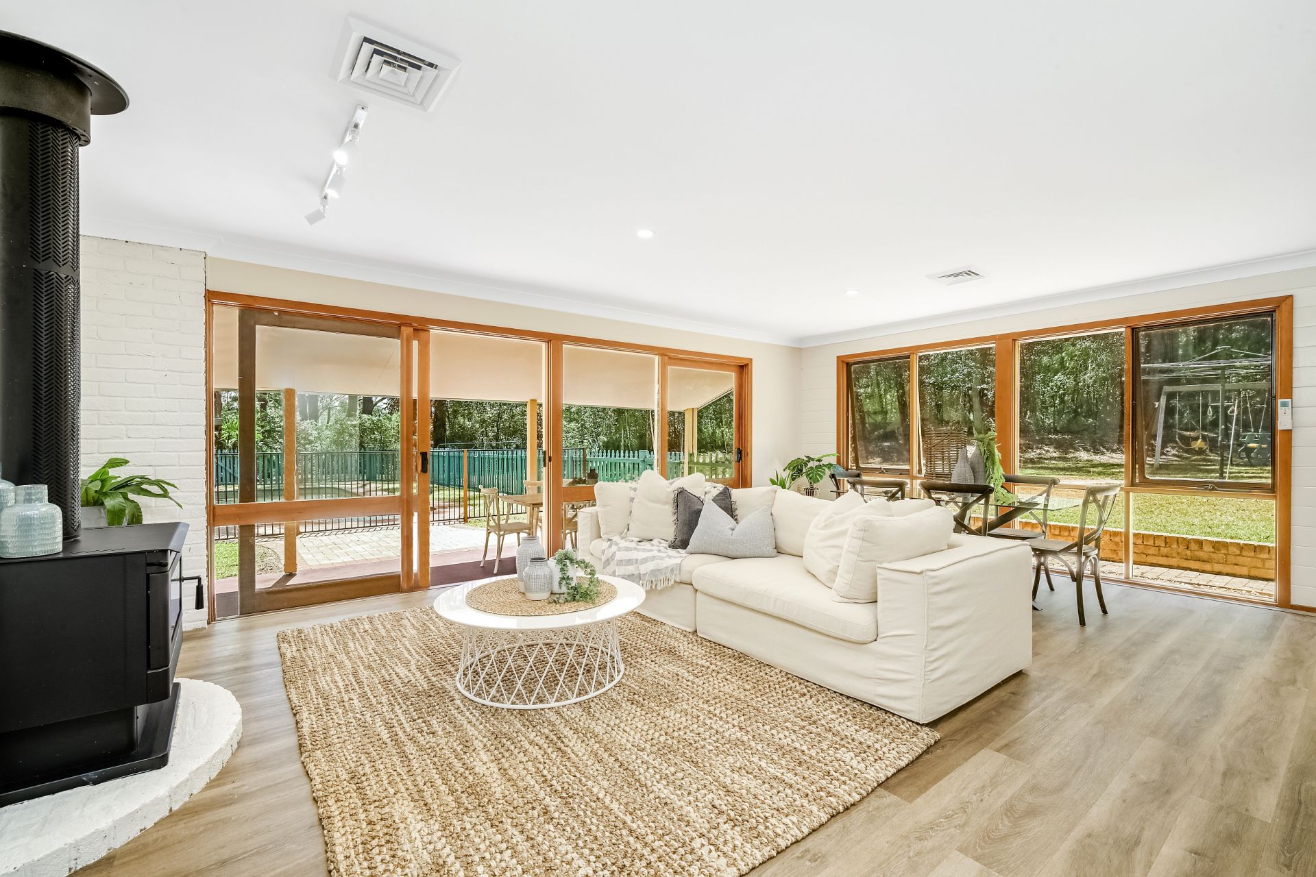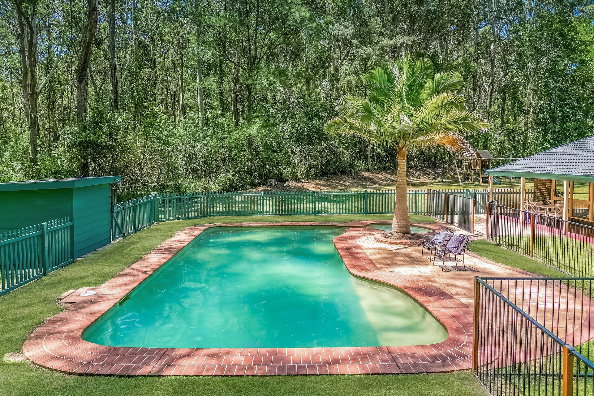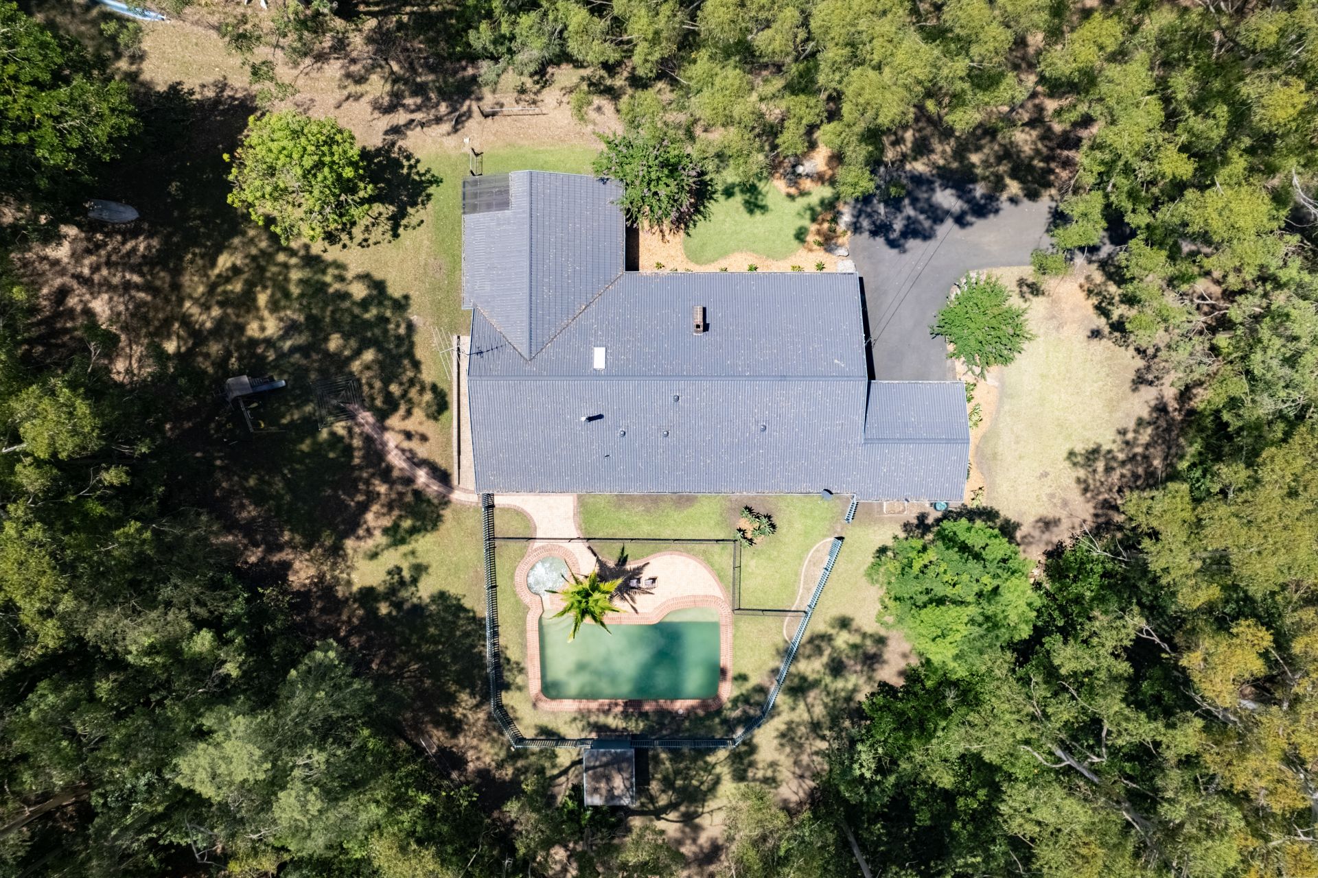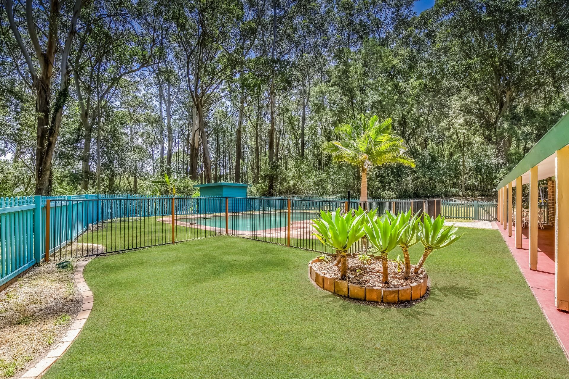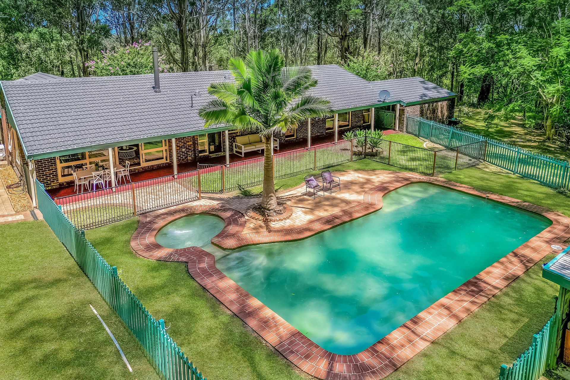 A new sealed driveaway meanders along the property boundary up to this private haven, which is set well back from the road. The home is surrounded by level lawns that are ideal for playing and entertaining. The family areas flow seamlessly to the covered verandah and the resort style swimming pool.