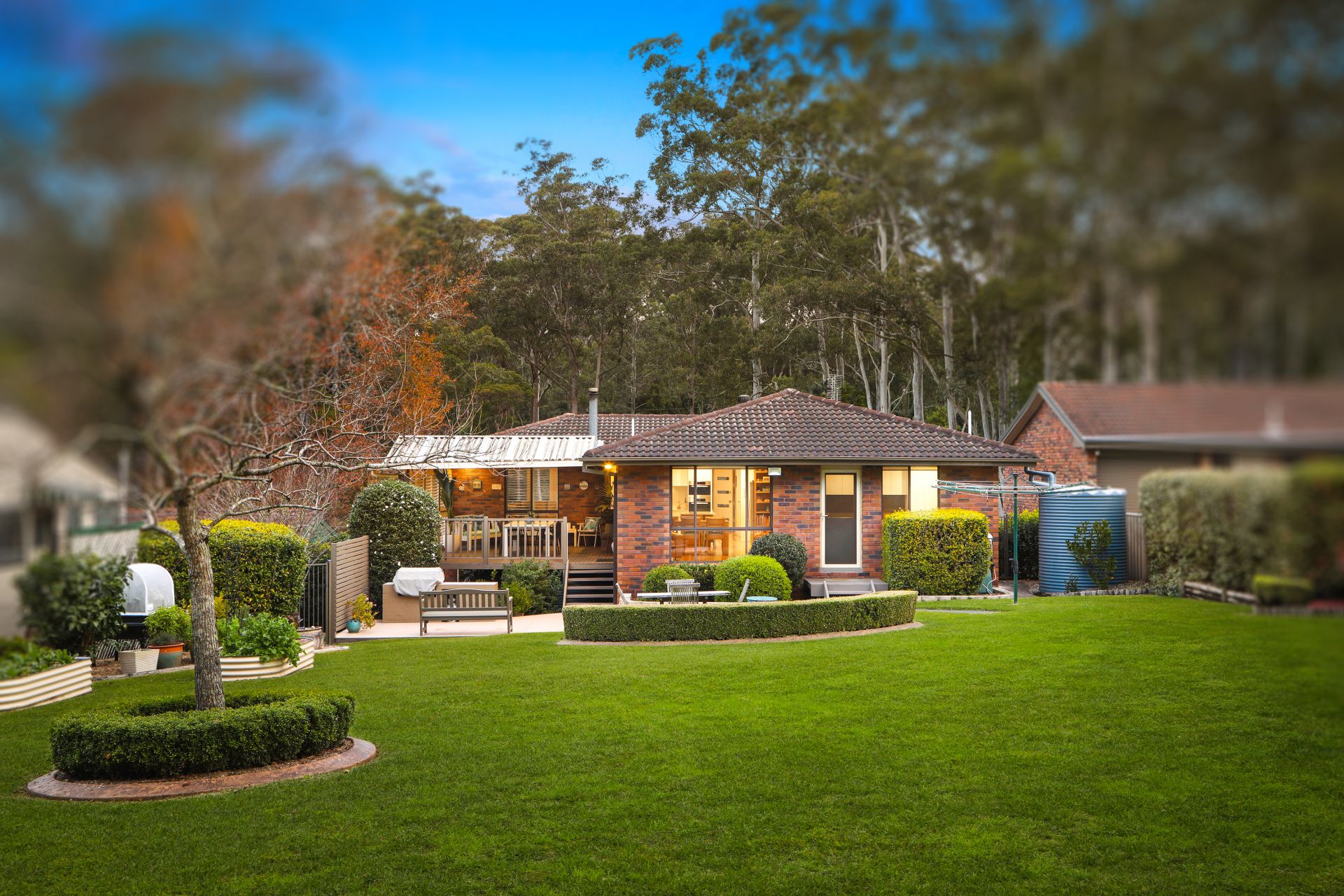 Entertaining family and friends is easy on the large covered deck, and external heating and ceiling fans are a great added feature for comfort. Below the deck is a BBQ area with sandstone pavers and LED floodlights. The generous rear yard is fully usable and fenced, ensuring a safe play area for children and pets. The beautiful mature landscaping that surrounds the property, and the raised vegetable gardens, are easy to maintain, and external plantation shutters ensure privacy and weather good weather protection.