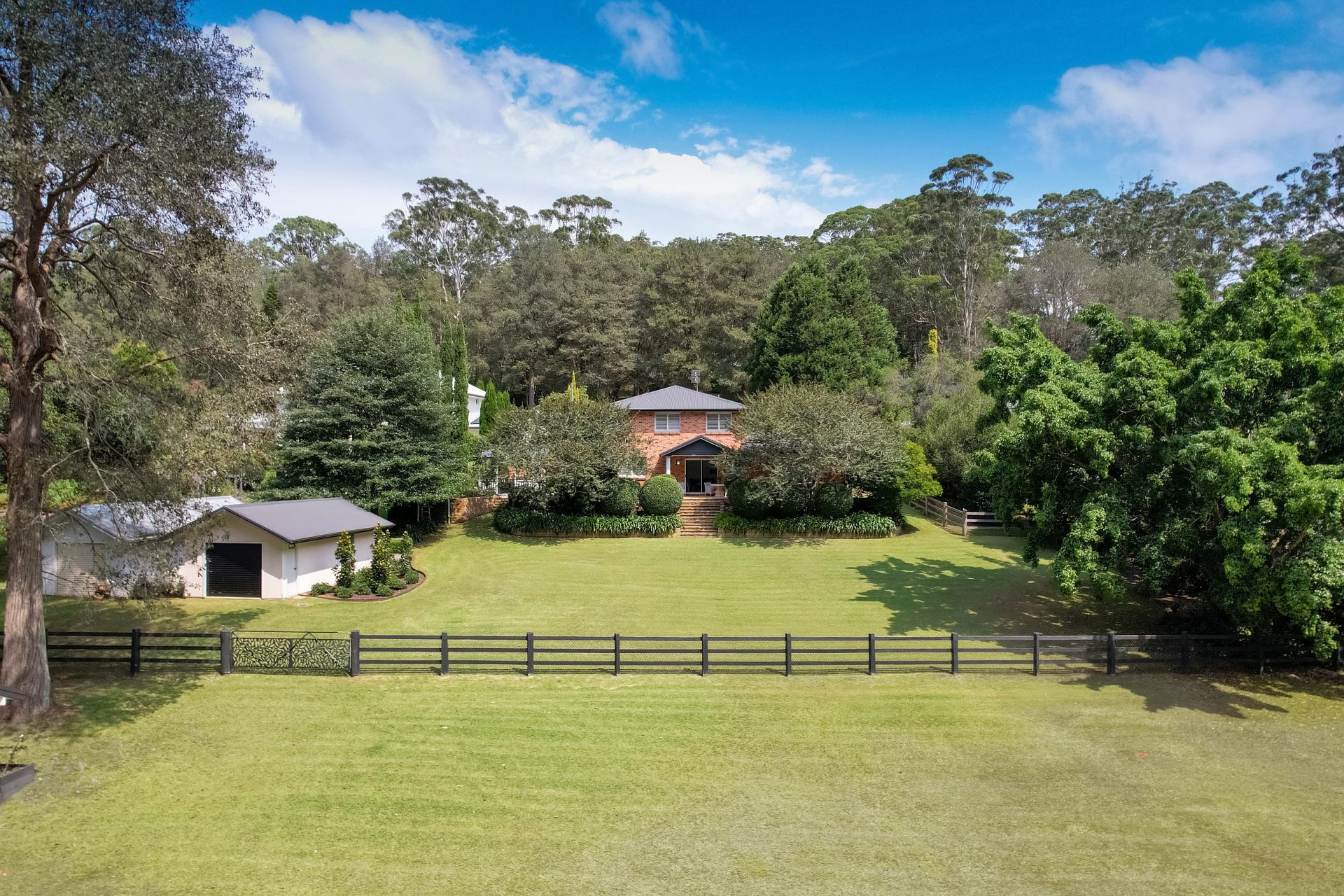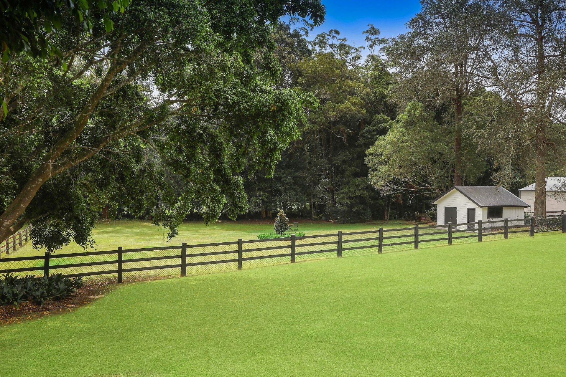 Beyond its aesthetic appeal, the property has exceptional infrastructure, including sturdy post-and-rail fencing, a well-constructed concrete driveway, a convenient shed for storage, original stables that add character, and two paddocks that offer a variety of uses. Connecting these rear paddocks is a charming timber bridge, adding to the property's allure and functionality.