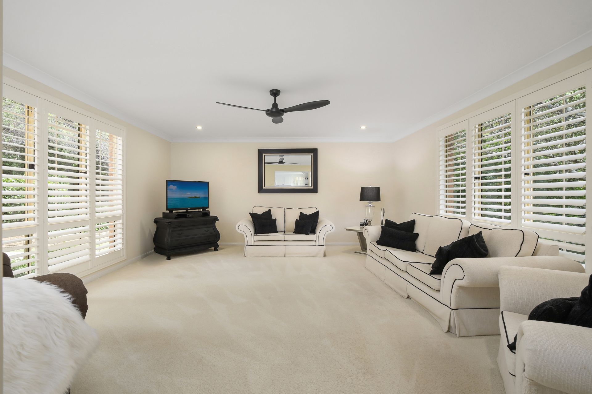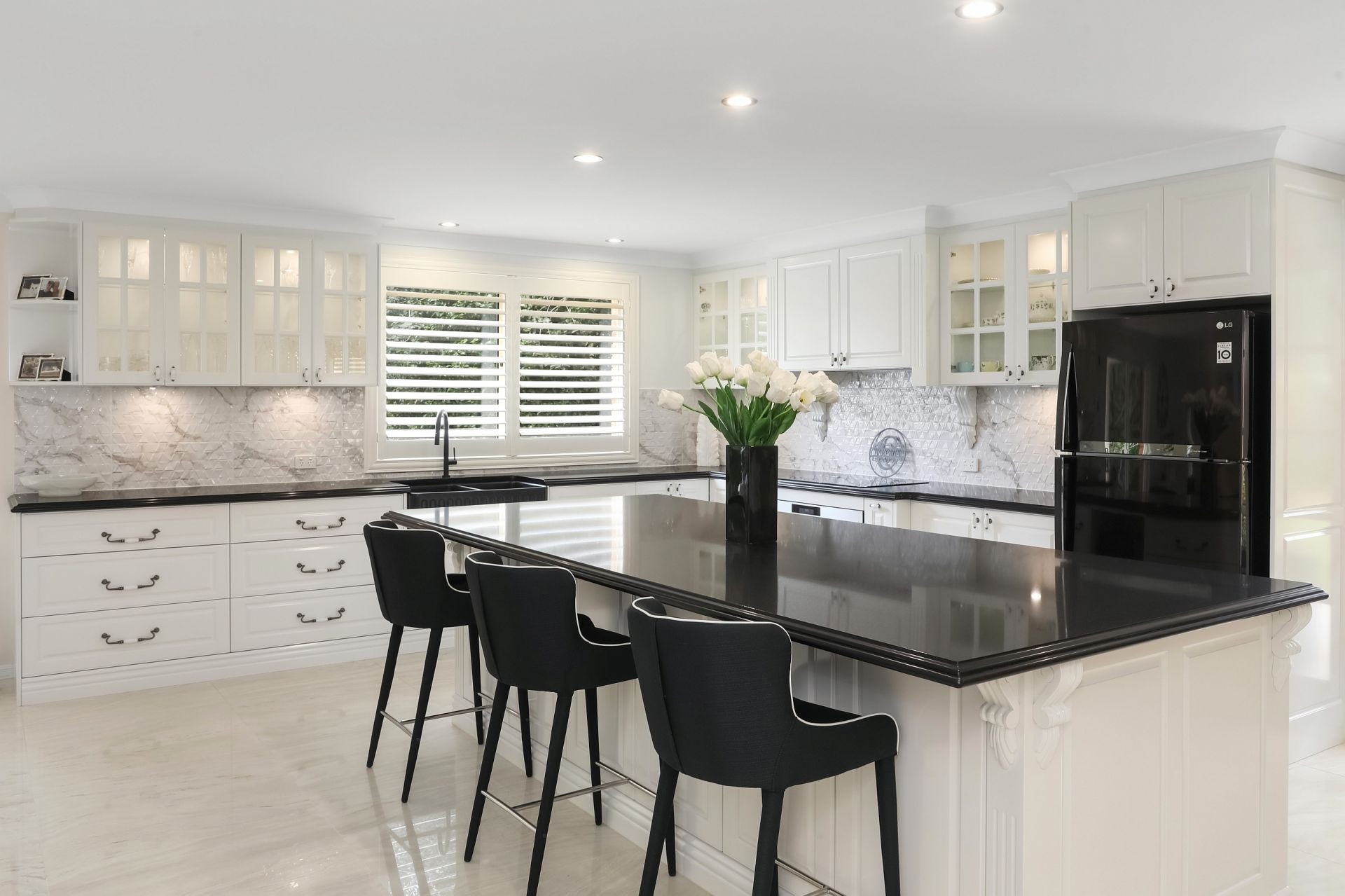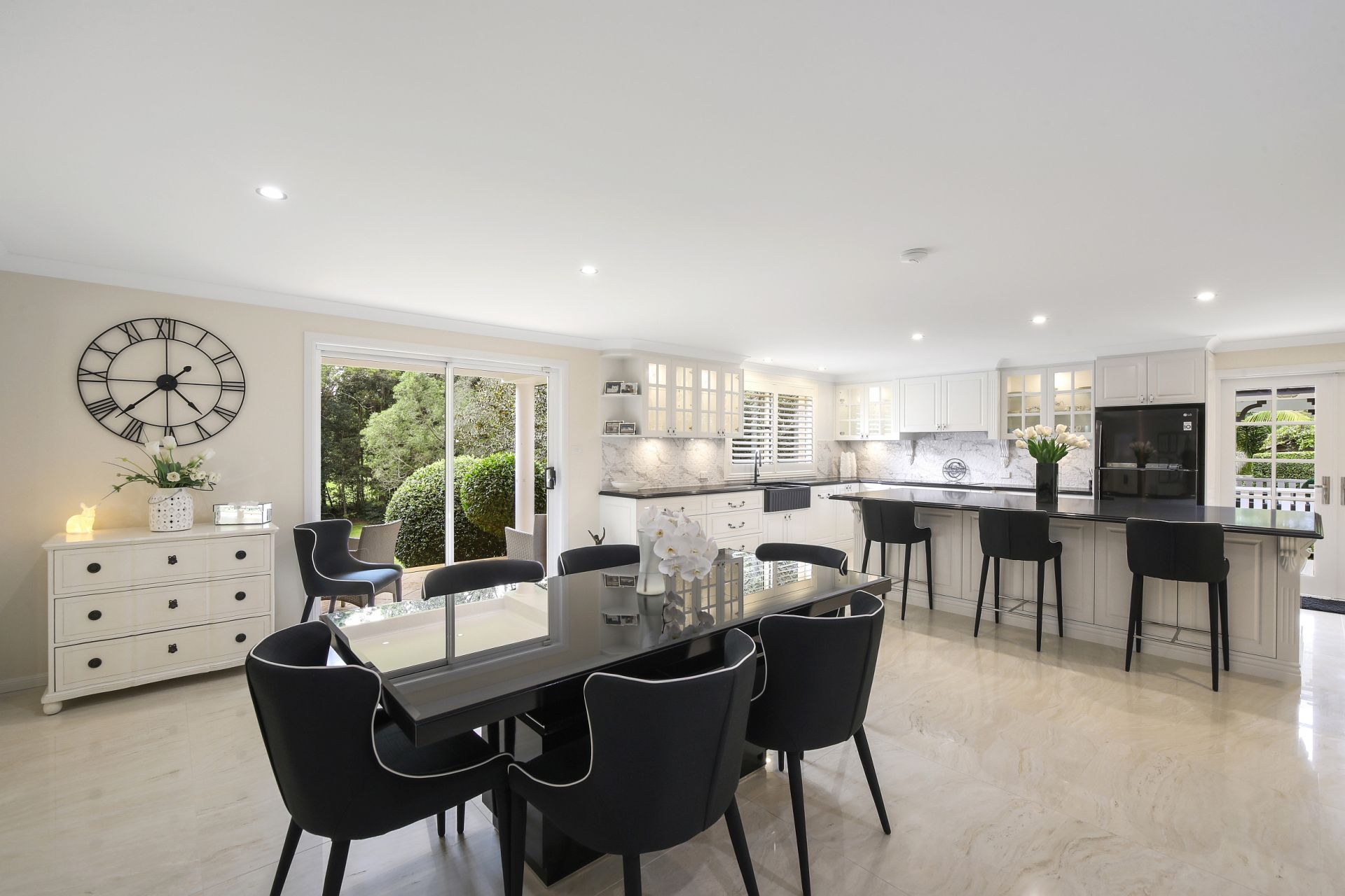 Once inside this immaculate abode, a sense of light and airiness permeates every corner. Recently updated bathrooms exude modern elegance, while the kitchen stands as the heart of the home, showcasing luxurious 40mm stone countertops, sleek soft-close cabinetry, high-end appliances, and a captivating ornate island bench.