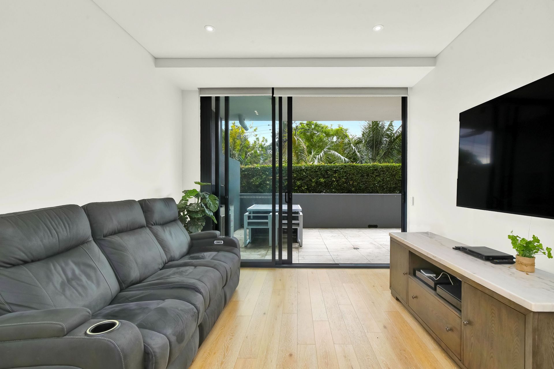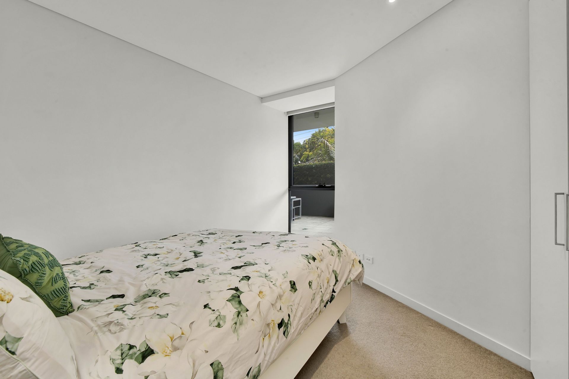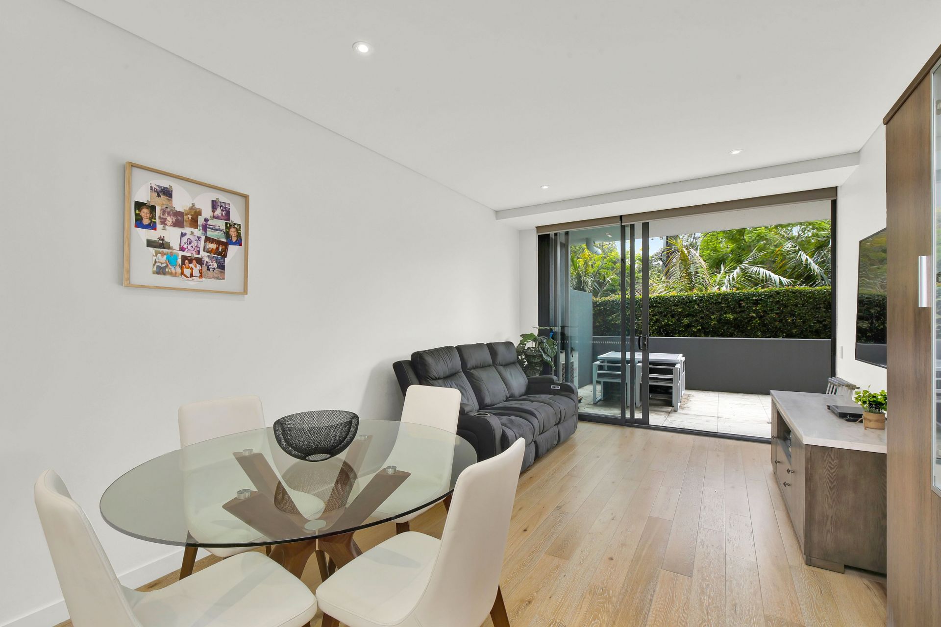 The light and bright apartment features neutral tones throughout and has a sleek, galley-style kitchen with a quality gas cooktop, stainless-steel appliances, and stone benchtops. The combined living and dining space has direct access to the north-facing garden courtyard, providing a private outdoor sanctuary.