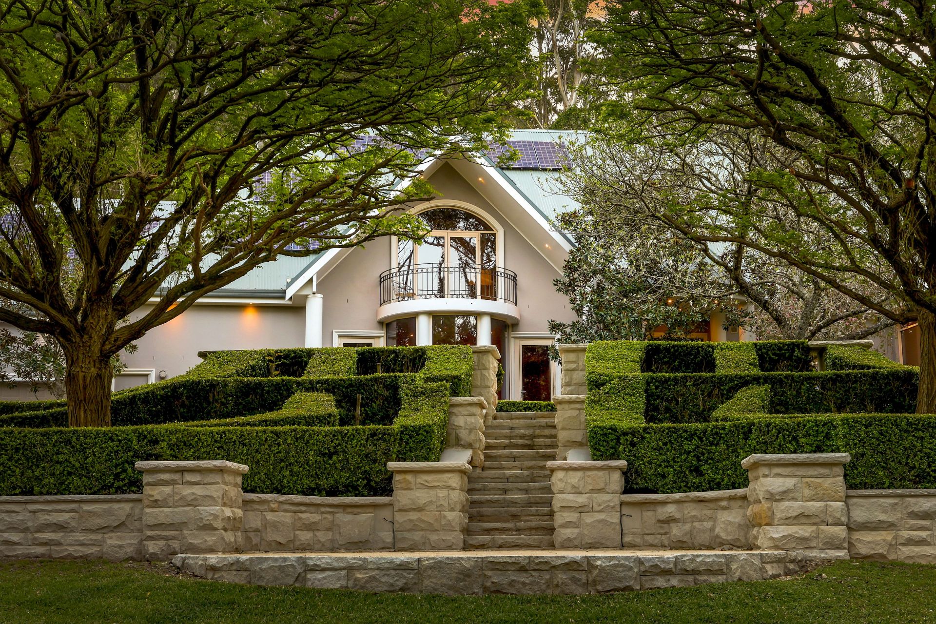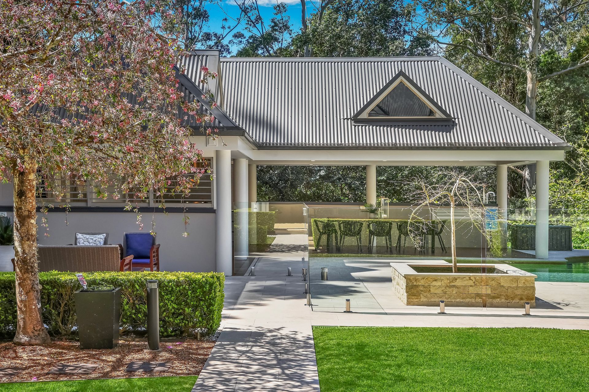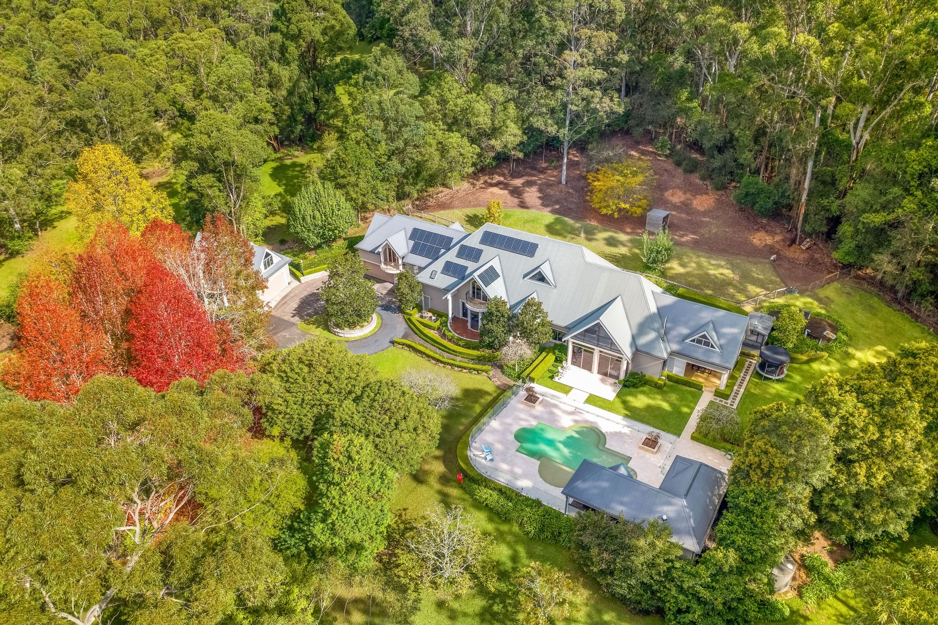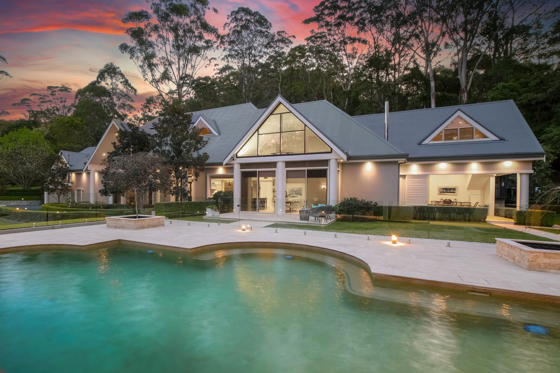 This immaculately presented estate has an elegantly appointed residence, which takes privacy to the next level and was architecturally designed by renowned Sydney architect Willy Kohler. The property sits beyond a handcrafted sandstone wall with an electric gate, has a lush rainforest setting to two boundaries and backs onto Katandra Reserve. A tree-lined driveway leads to the home, which also has garaging for seven cars and plenty of hard standing parking areas.