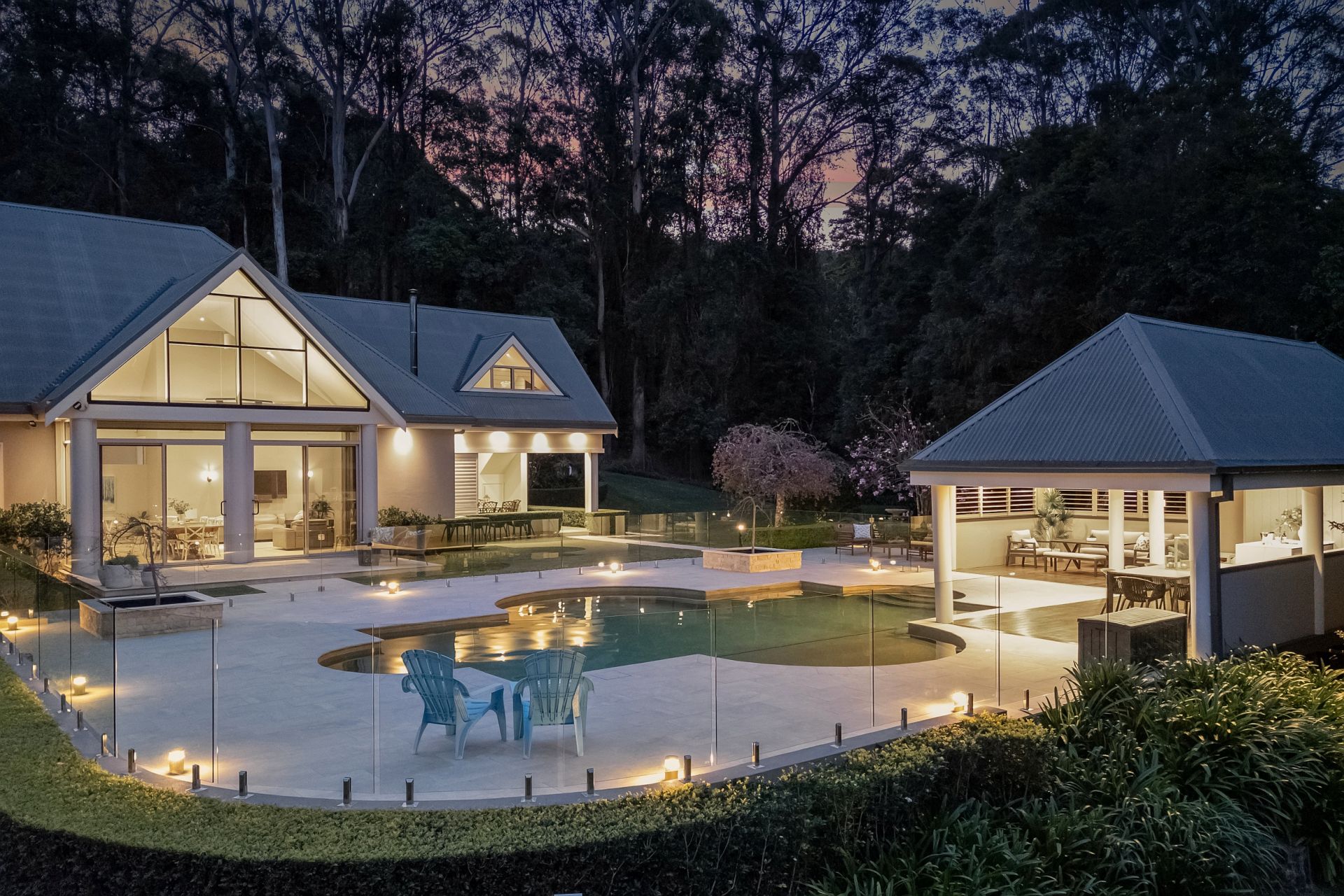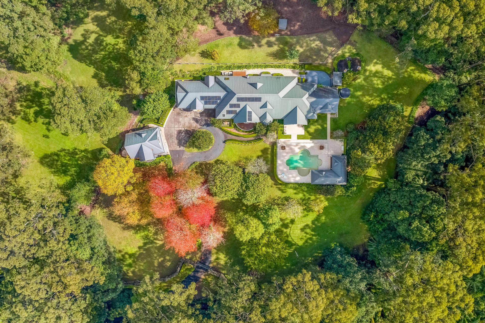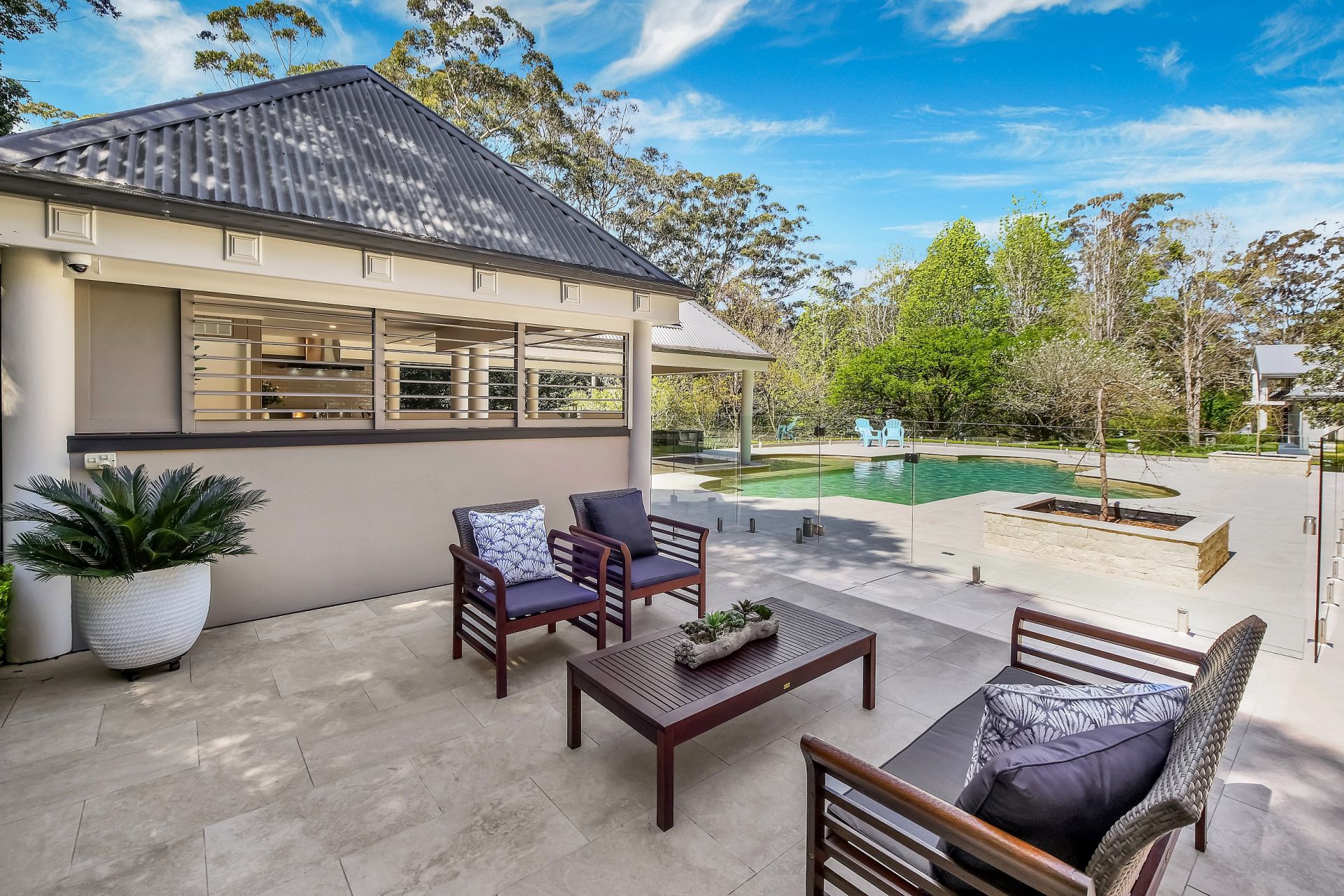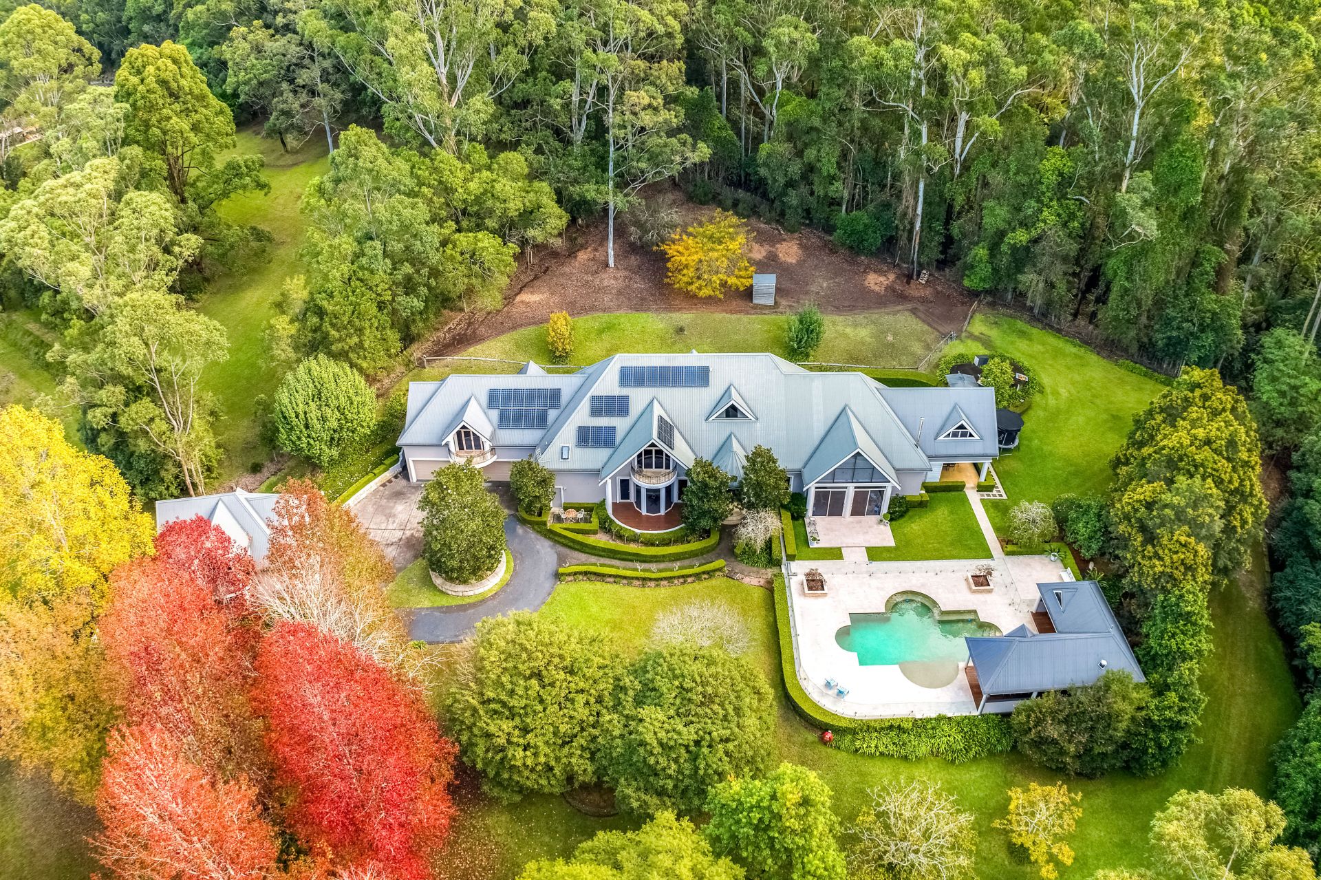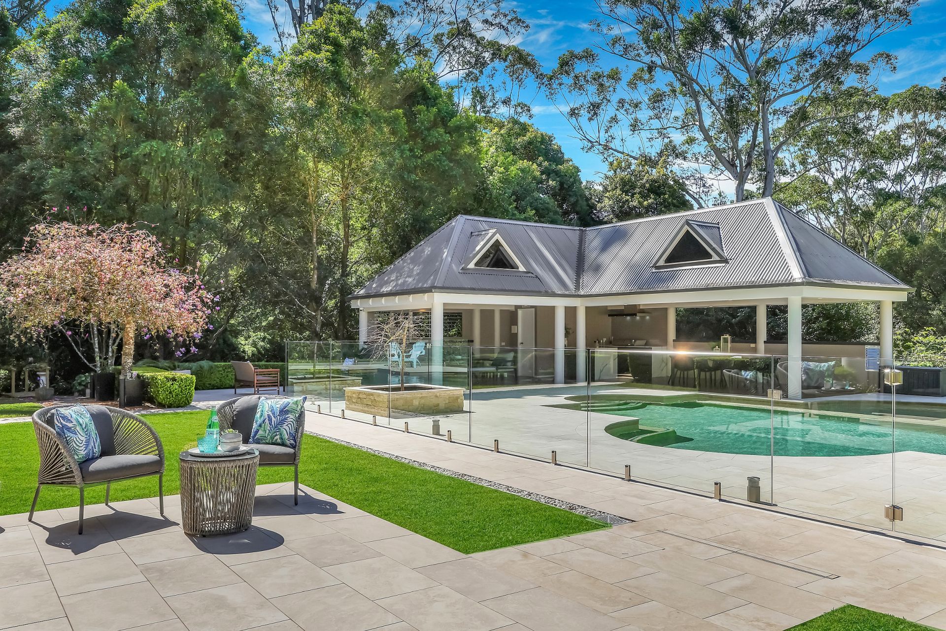 This immaculately presented estate has an elegantly appointed residence, which takes privacy to the next level and was architecturally designed by renowned Sydney architect Willy Kohler. The property sits beyond a handcrafted sandstone wall with an electric gate, has a lush rainforest setting to two boundaries and backs onto Katandra Reserve. A tree-lined driveway leads to the home, which also has garaging for seven cars and plenty of hard standing parking areas.