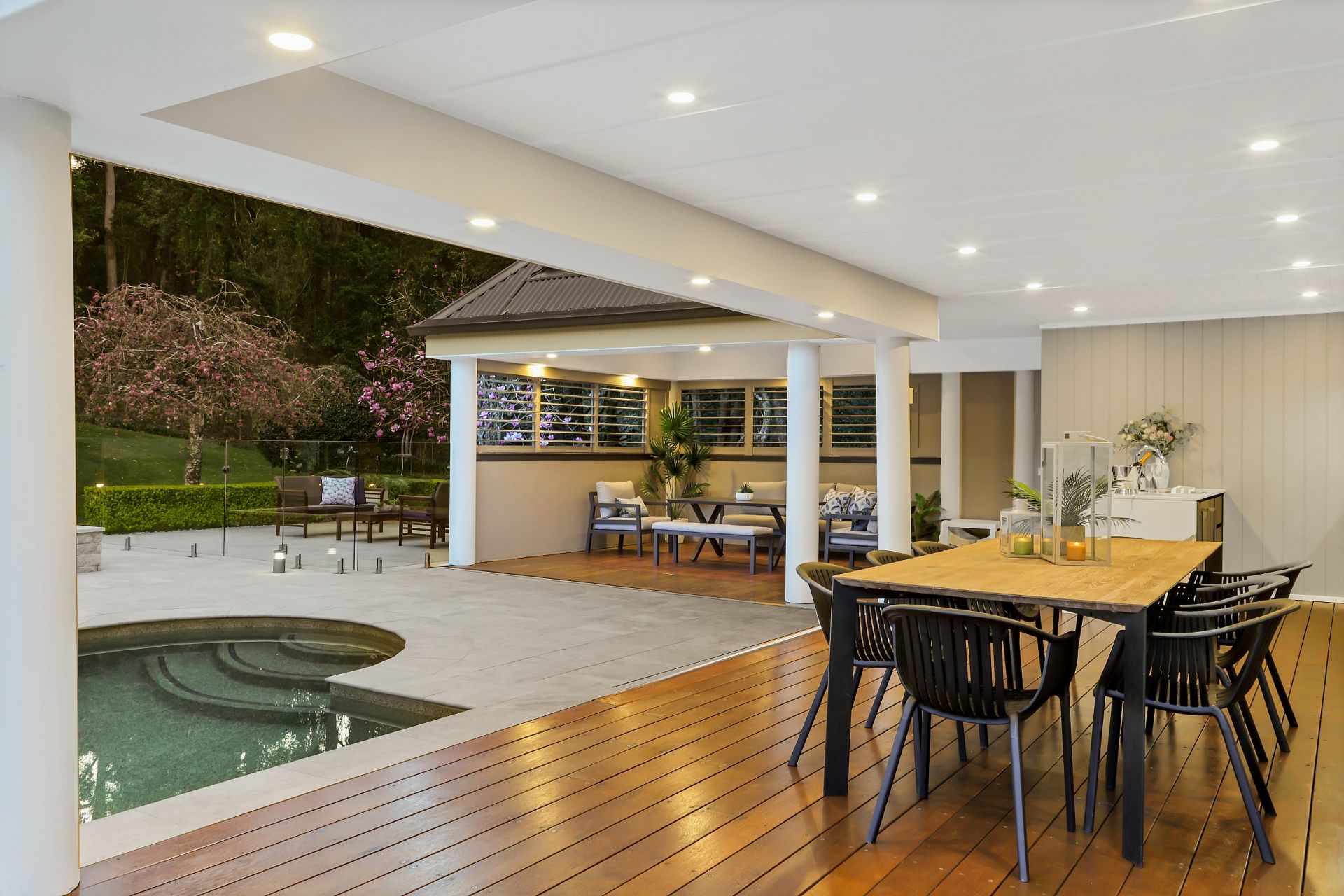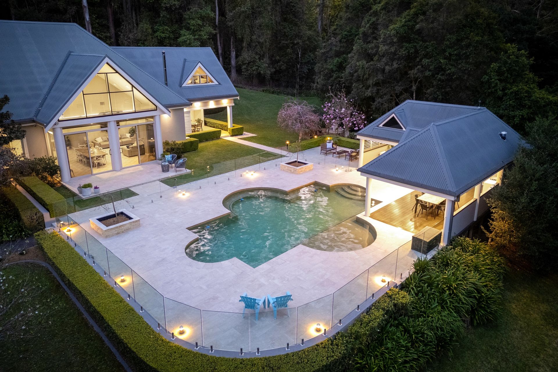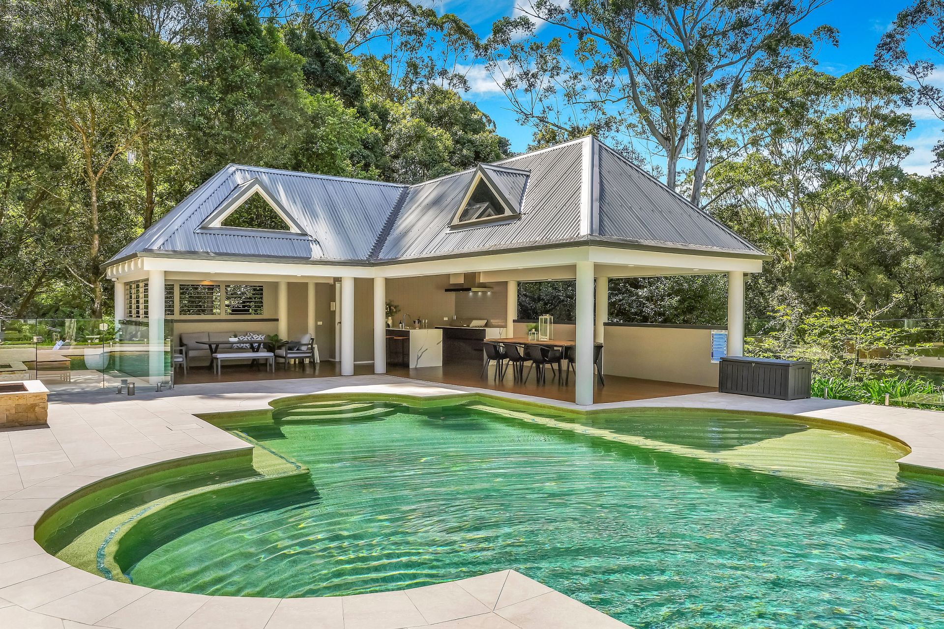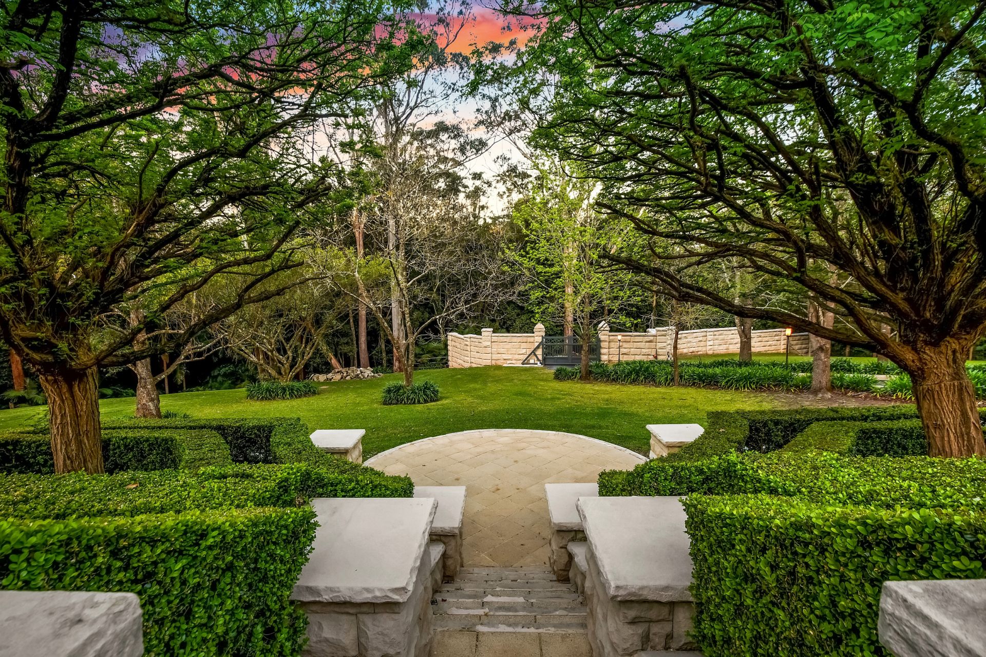 This immaculately presented estate has an elegantly appointed residence, which takes privacy to the next level and was architecturally designed by renowned Sydney architect Willy Kohler. The property sits beyond a handcrafted sandstone wall with an electric gate, has a lush rainforest setting to two boundaries and backs onto Katandra Reserve. A tree-lined driveway leads to the home, which also has garaging for seven cars and plenty of hard standing parking areas.