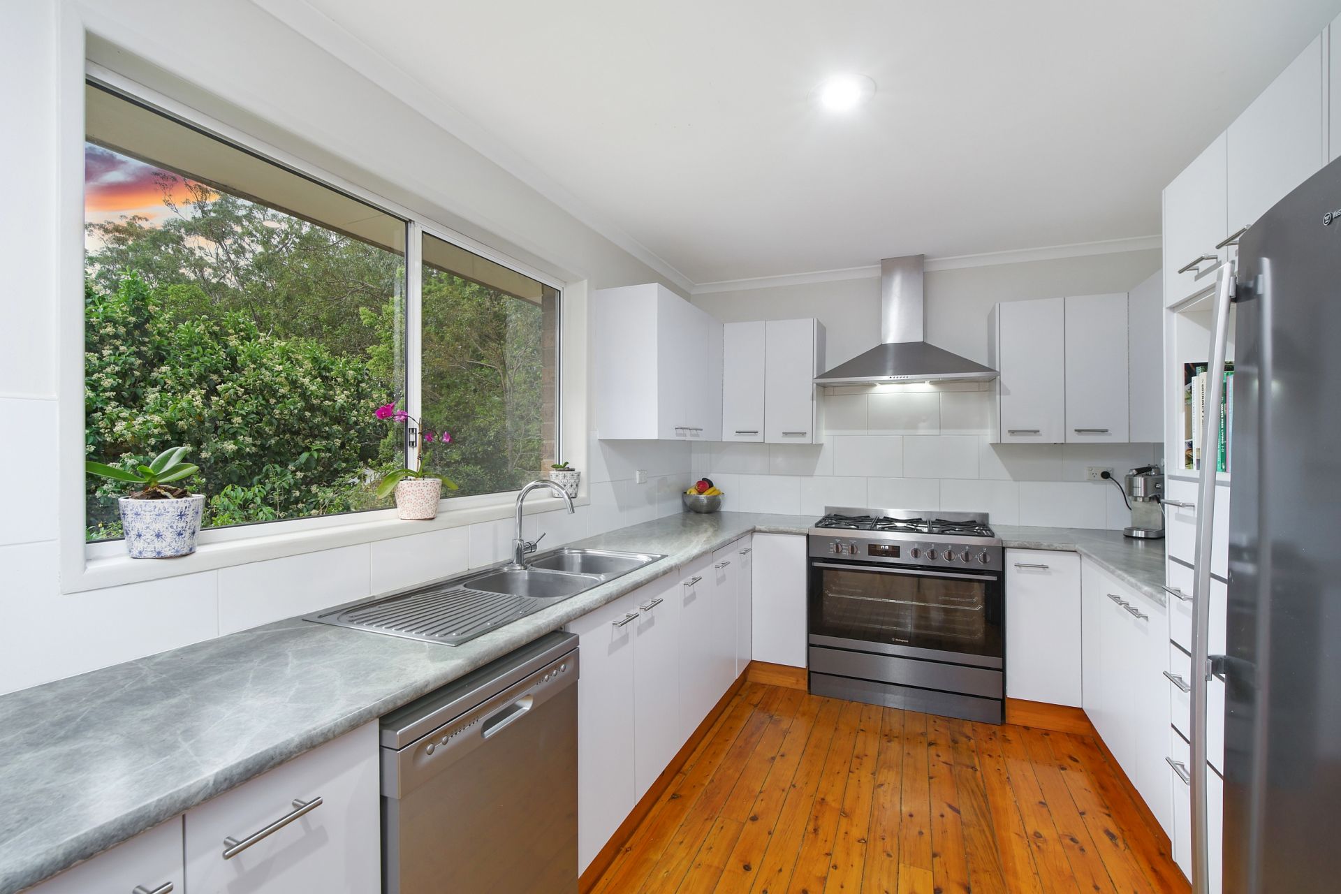 The immaculately maintained grounds provide a secluded sanctuary, whilst still being only moments from all amenities, Gosford CBD and public and private hospitals. The top level of the home houses the open plan living and dining areas that flow through to the galley-style chef's kitchen which has a 900mm freestanding oven and gas cooktop and dishwasher. The three bedrooms on this level have built-in robes, and the main bathroom has been fully renovated.