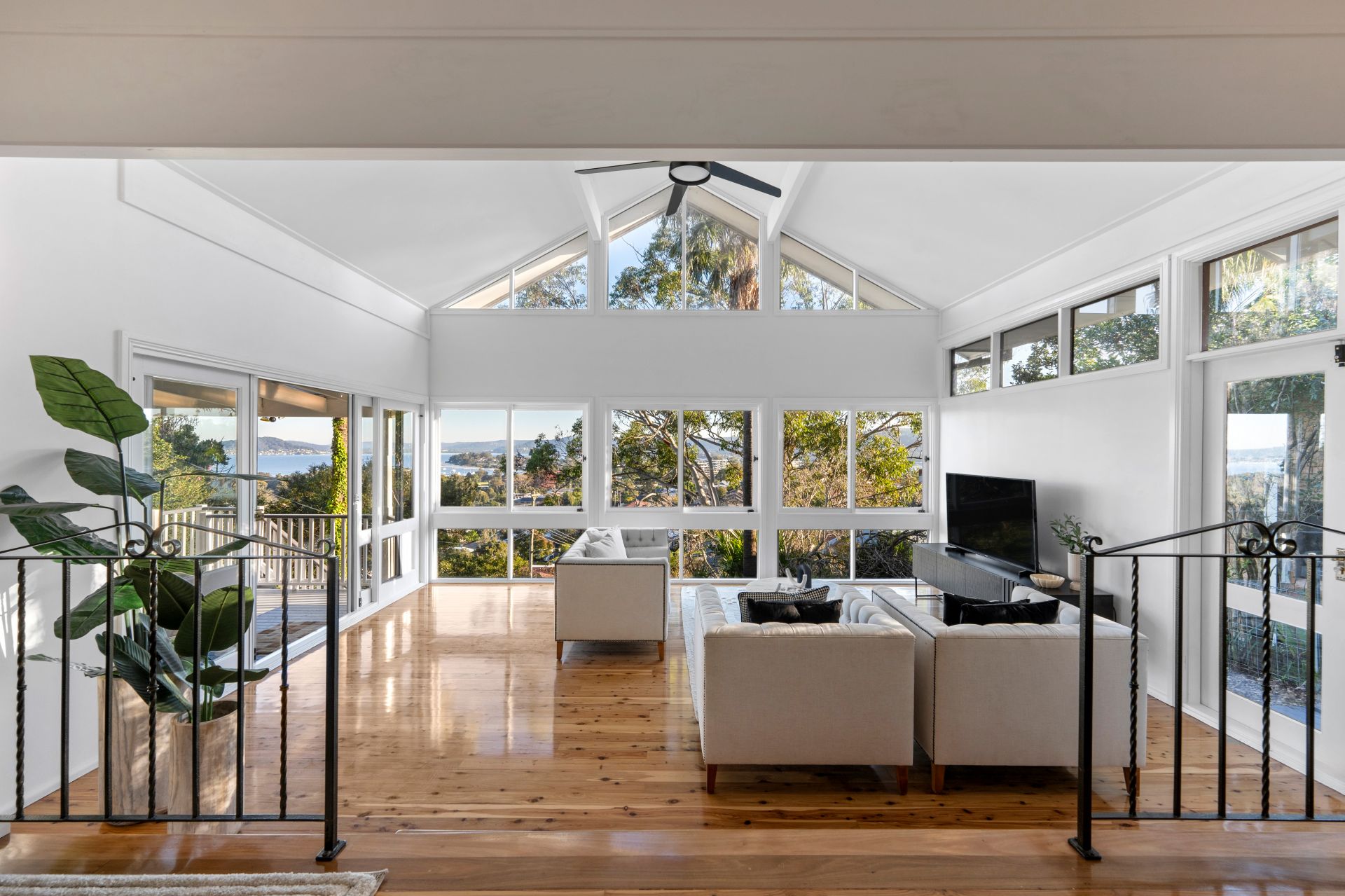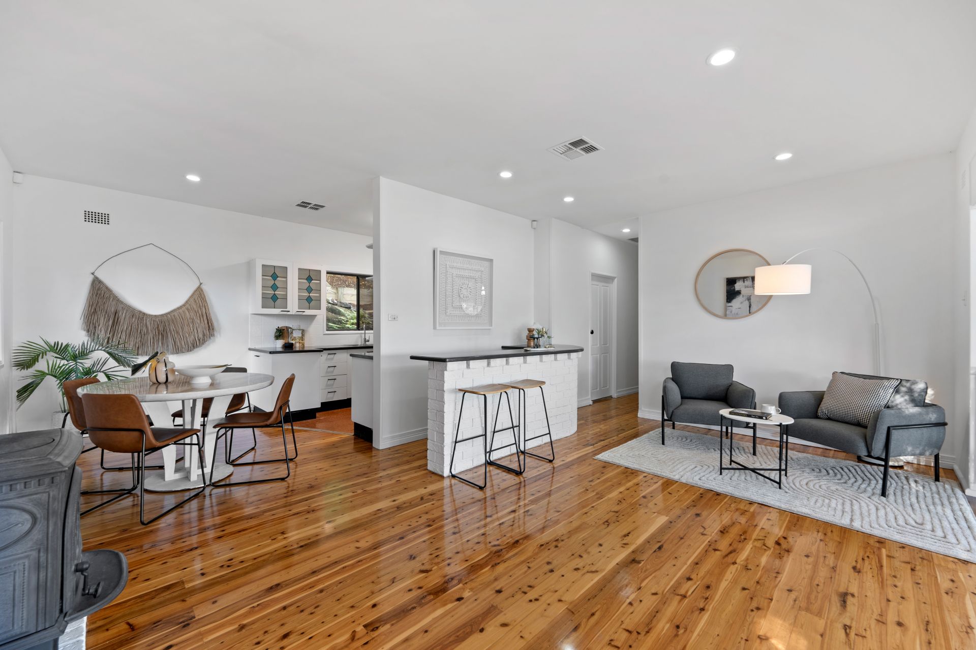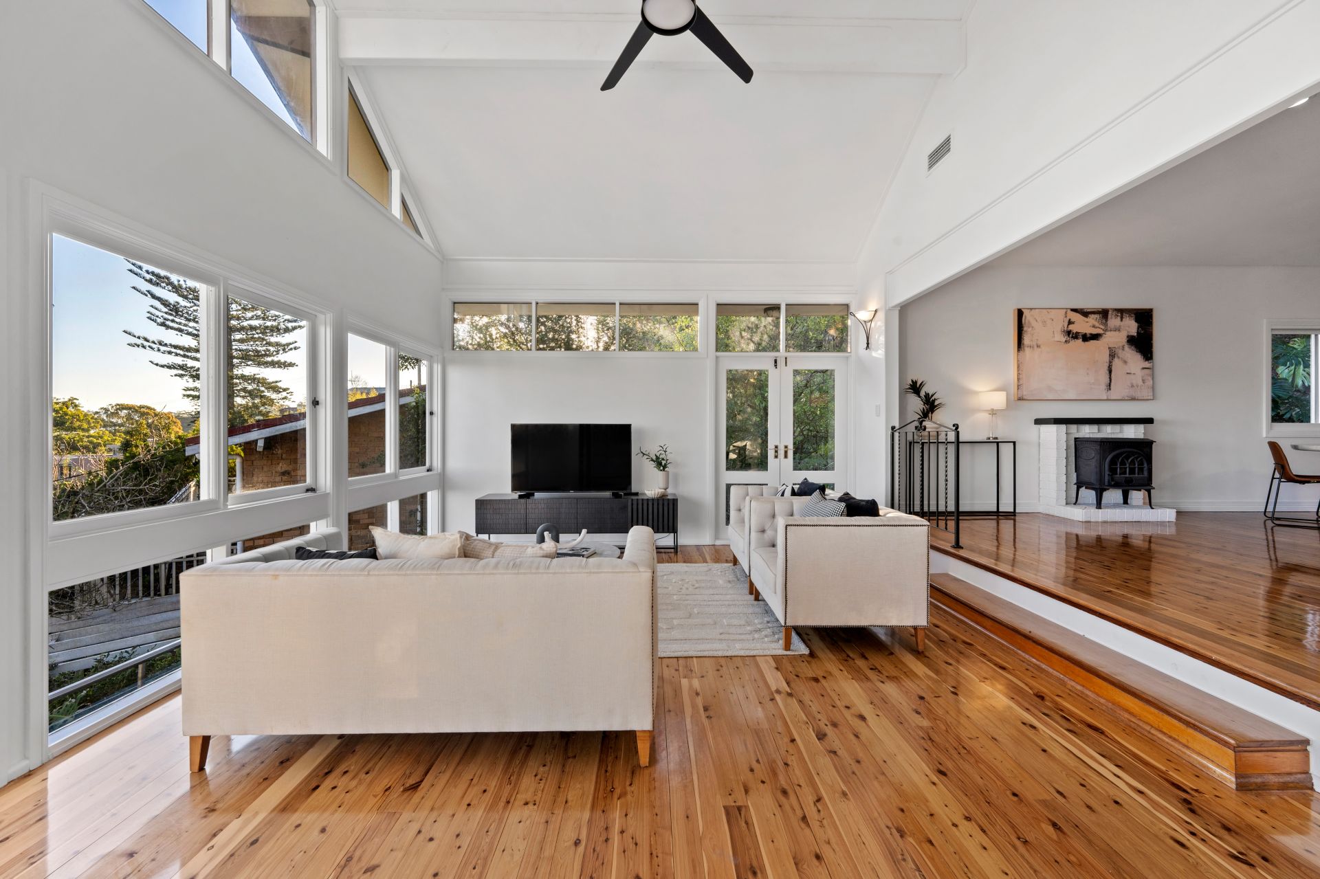 Polished floorboards and fresh paintwork throughout accentuate the spacious living area, which also has high raked ceilings and expansive picture windows. A cozy sitting room and bar area provide the perfect spots for relaxation and entertaining family and friends.