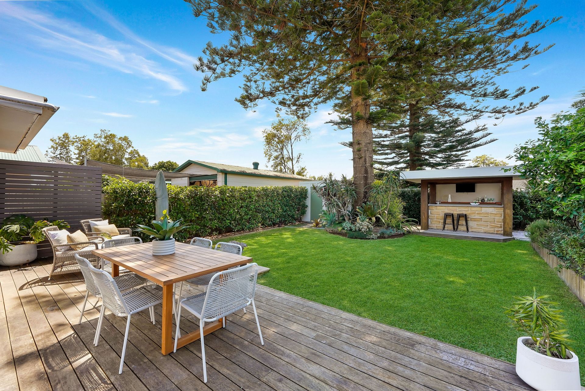 Each of the generously sized bedrooms features built-in robes in two of them, providing plenty of storage, while the separate lounge and dining areas are perfect for enjoying those laid-back coastal days. Step outside to an expansive deck that offers an ideal space for entertaining, with the beauty of the surrounding landscaped gardens and established greenery enhancing your connection to nature.