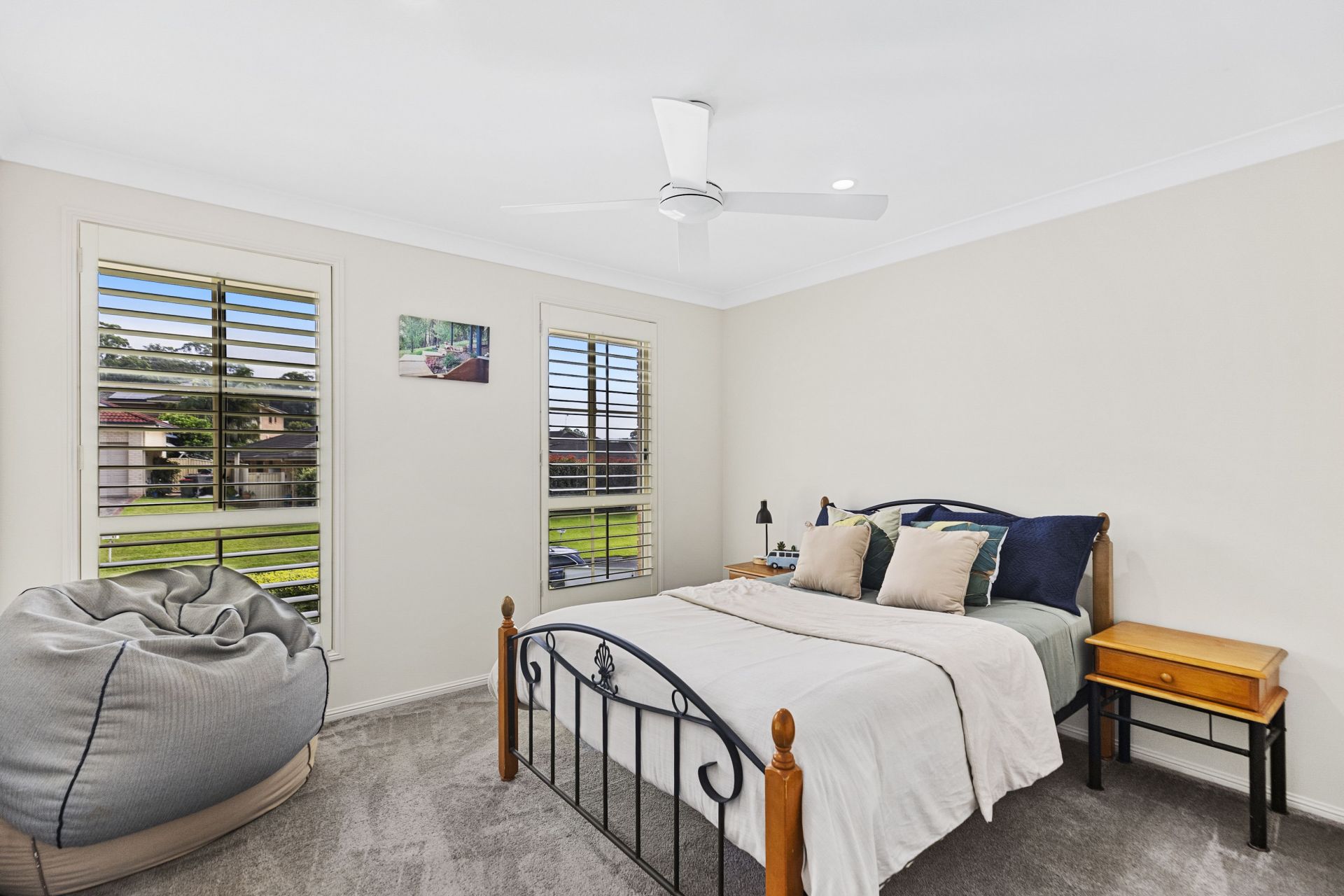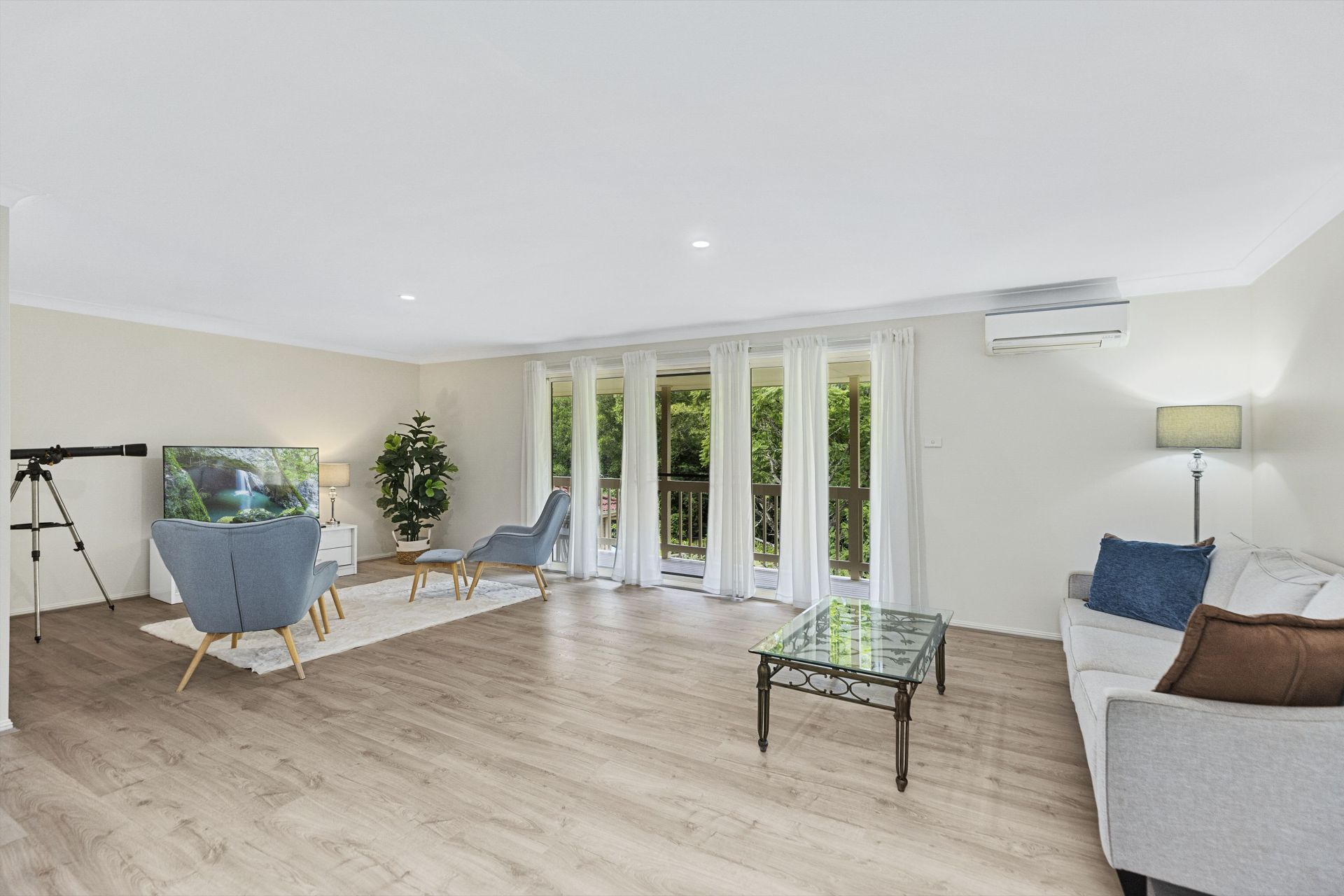 The home also includes abundant storage, a large double garage with internal access and remote-control entry, reverse cycle air conditioning on both levels, new flooring from the stairs up, and a contemporary neutral color palette. Surrounded by established landscaping, it offers both privacy and tranquility in a quiet, tightly held street where opportunities like this are rare.