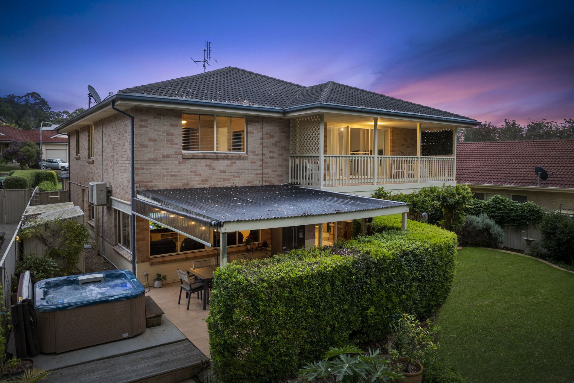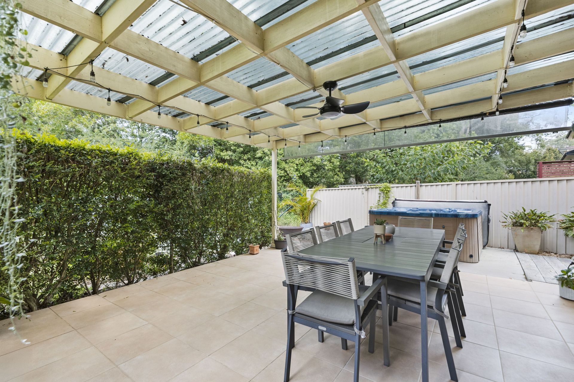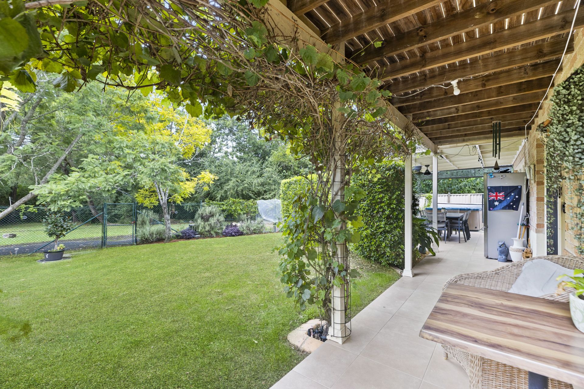 Flowing seamlessly from the kitchen and dining area, the outdoor entertainment zone is framed by lush, mature landscaping, and a private lower-level entertainment area, a great place to enjoy the spa and cooking BBQ's. The fully fenced yard creates a secure and serene retreat for the whole family.