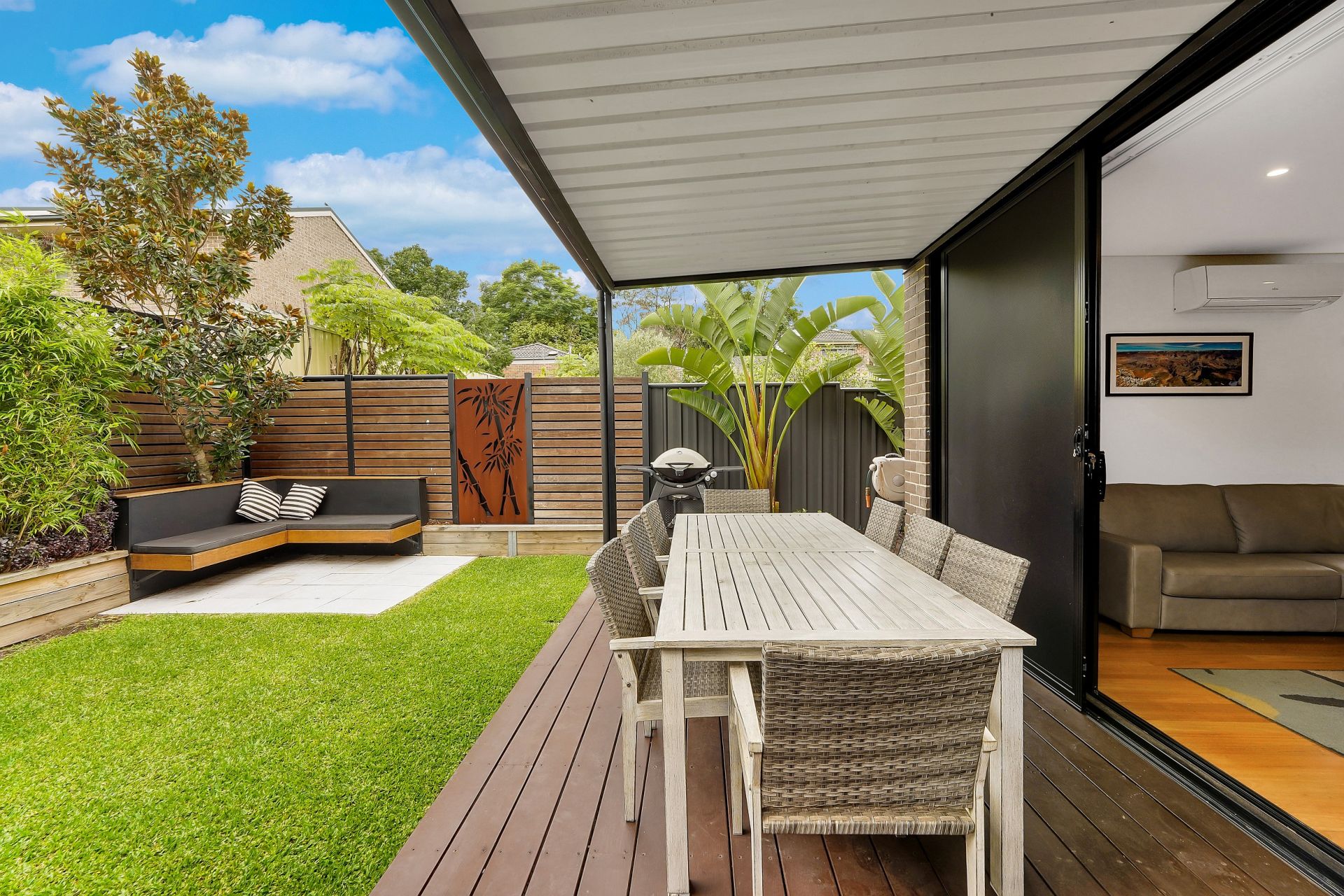 The open-plan living area effortlessly flows out to a sunny, north-facing covered entertaining deck, offering the perfect spot to relax and enjoy views of the level yard and lush, established gardens. High ceilings and air conditioning ensure comfort year-round, while the two large bedrooms with built-in robes offer ample storage and space. A third, smaller bedroom-ideal as a study or child's room-also features a built-in robe.