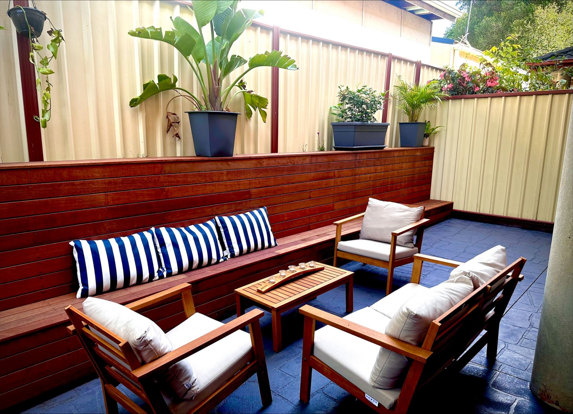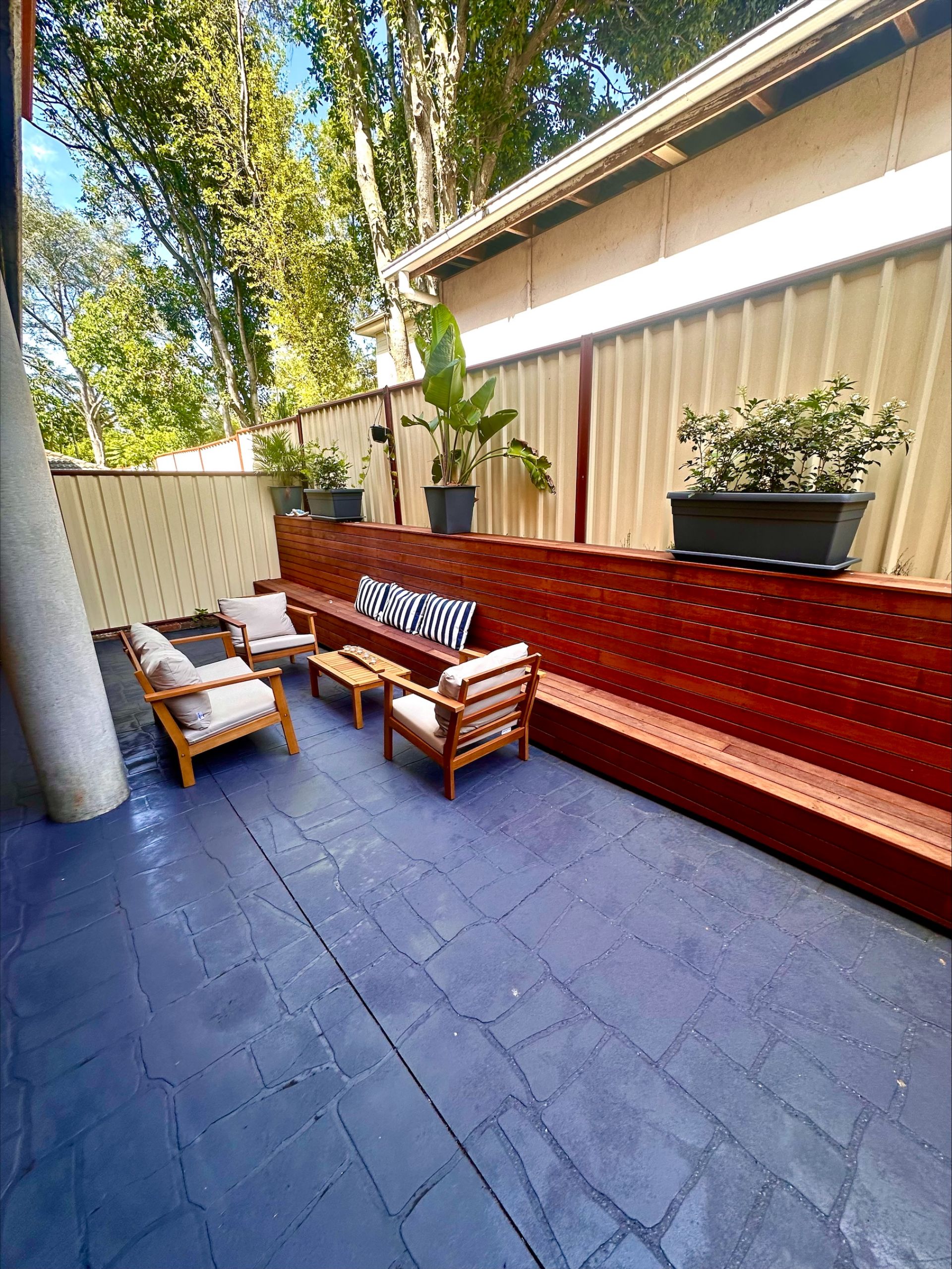 There are ceiling fans and downlights throughout, and the home is low-maintenance inside.