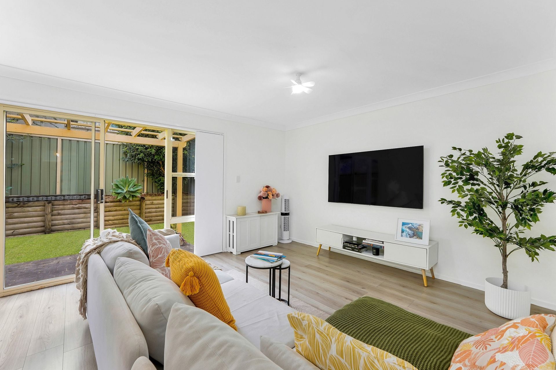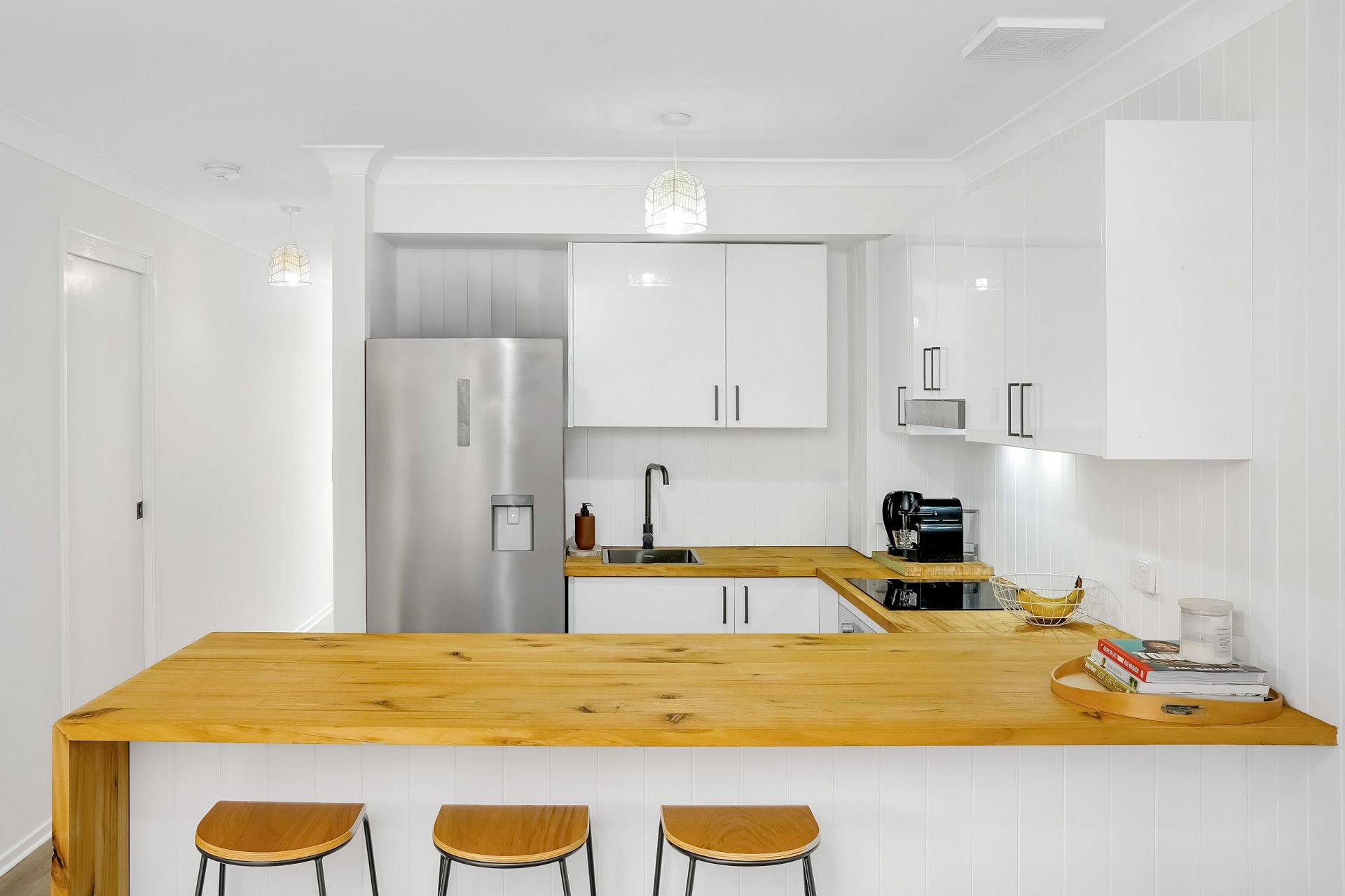 This beautifully presented 3-bedroom townhouse offers an open-plan design that maximizes space and natural light, creating a bright and welcoming atmosphere. The contemporary kitchen is a highlight, featuring stylish timber bench tops that complement the modern floorboards throughout the living areas.