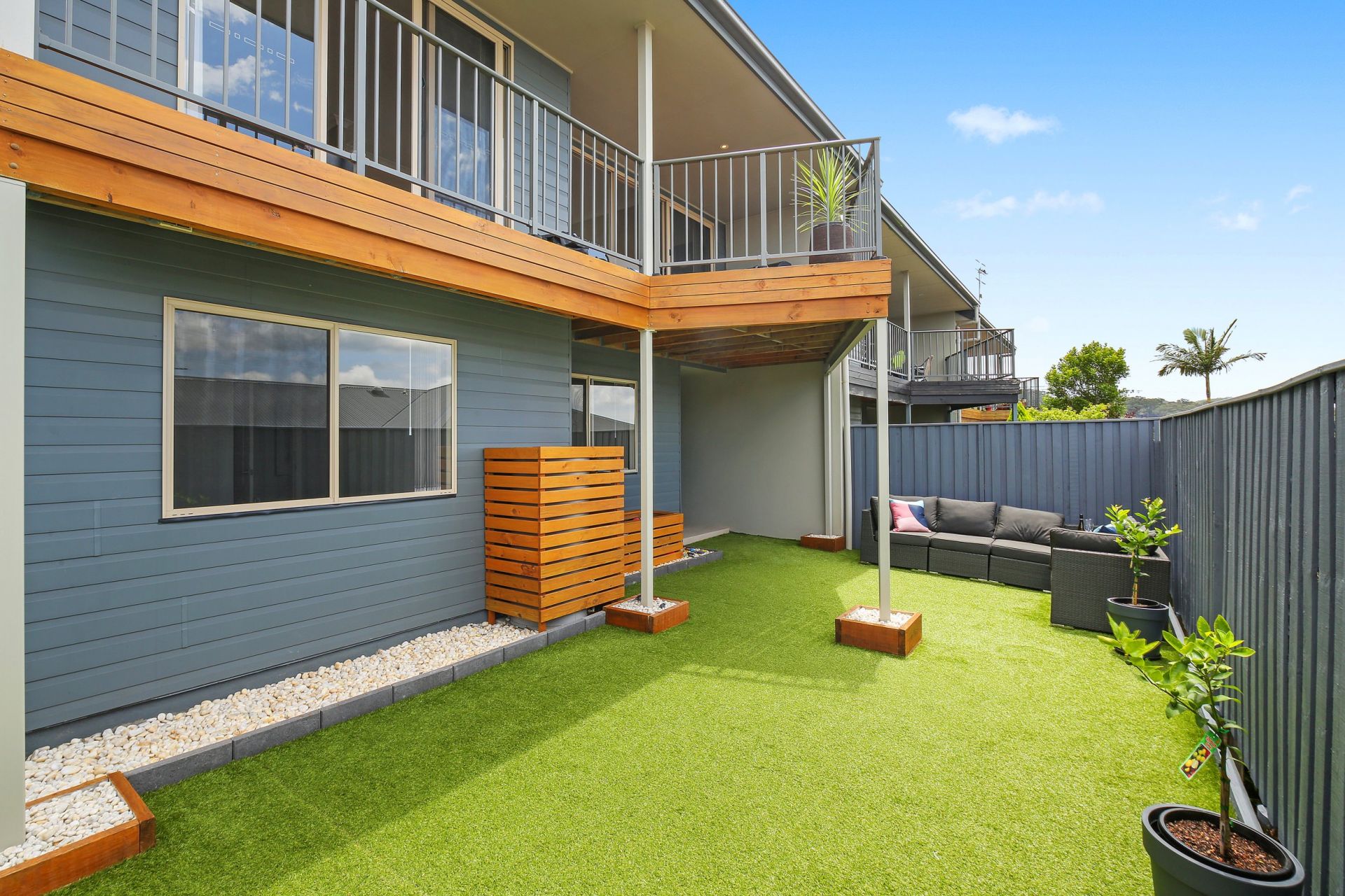 There is also air conditioning throughout the home, a study nook, a secure double garage with internal access, and adjoining the living area, a covered deck overlooks the good-sized courtyard, which has artificial grass providing a practical area for relaxation or for children to play.