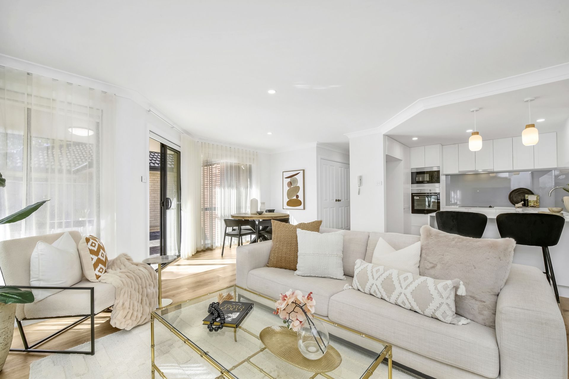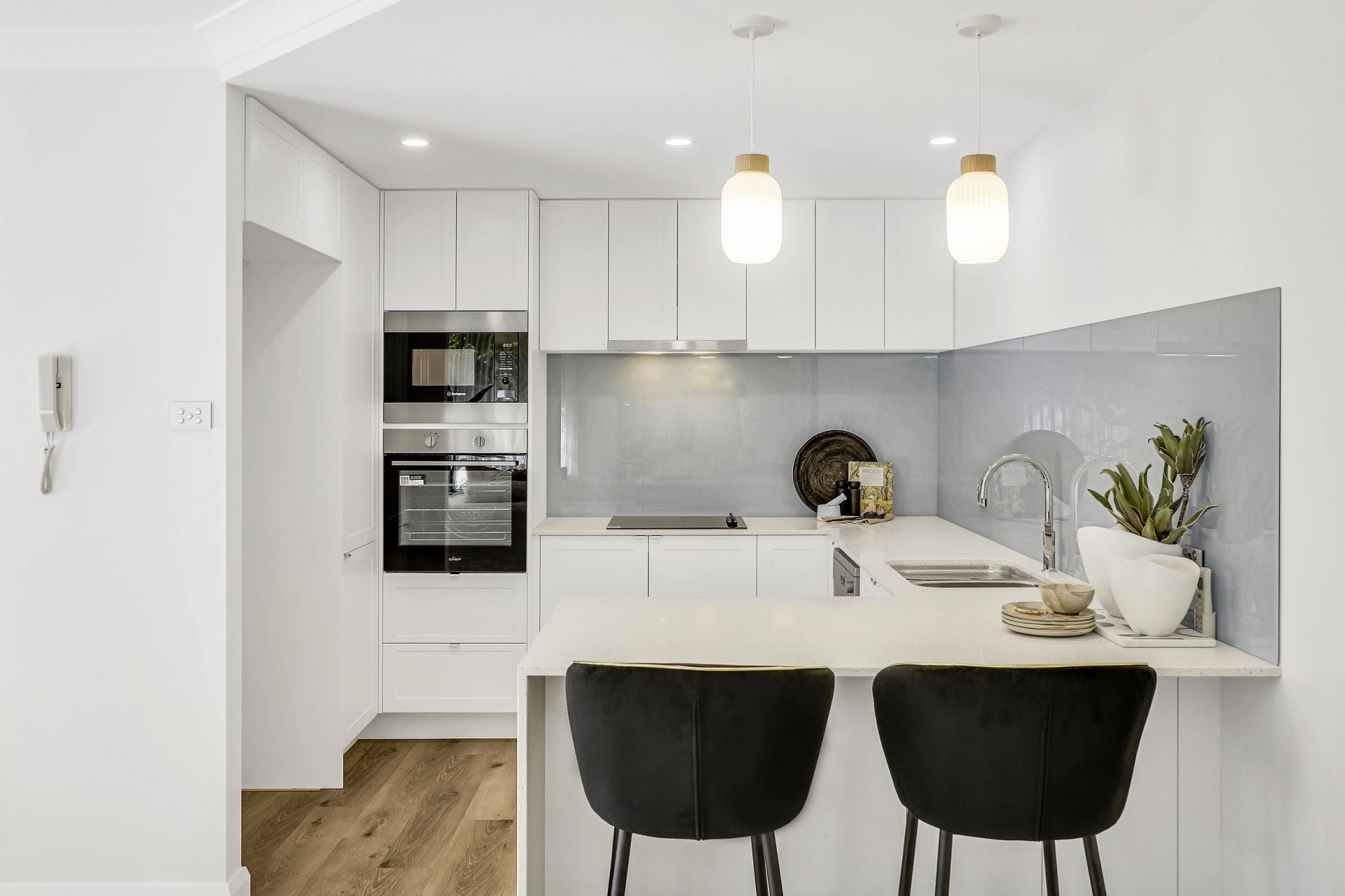 The master bedroom is found at the front of the home, with a built-in robe and two-way bathroom. The combined dining and living spaces flow through to the kitchen with Caesarstone benchtops, a duo of feature pendant lights, and stainless-steel appliances. Glass sliding doors flow out to the sunny paved courtyard; a private retreat to enjoy the peaceful surrounds and low maintenance gardens.