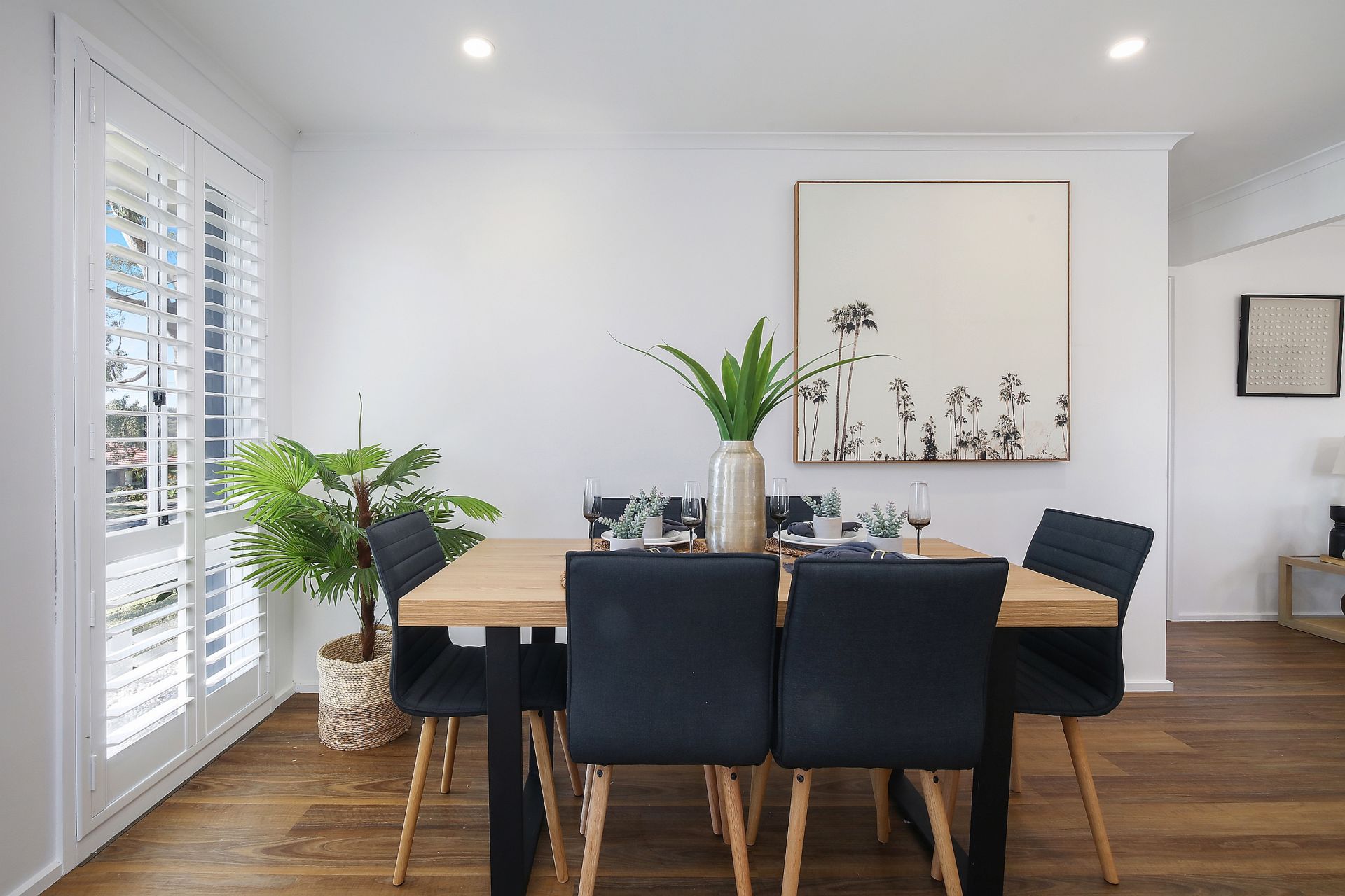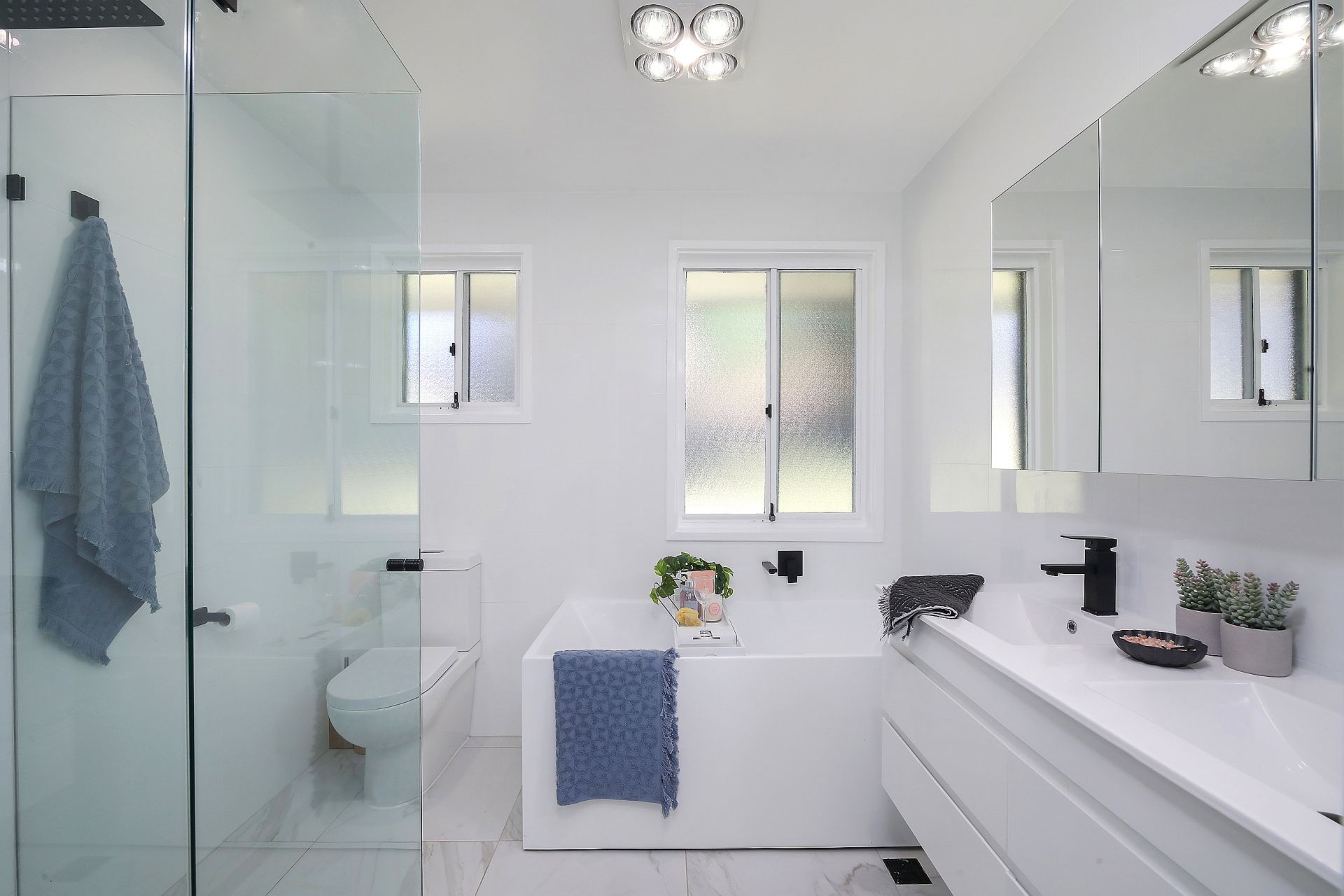 All three bedrooms are carpeted, there is a built-in wardrobe in the main bedroom and the bathroom includes a separate bath, a frameless glass shower screen and a double basin vanity. In addition, there is a small study/office and plantation shutters throughout the home.