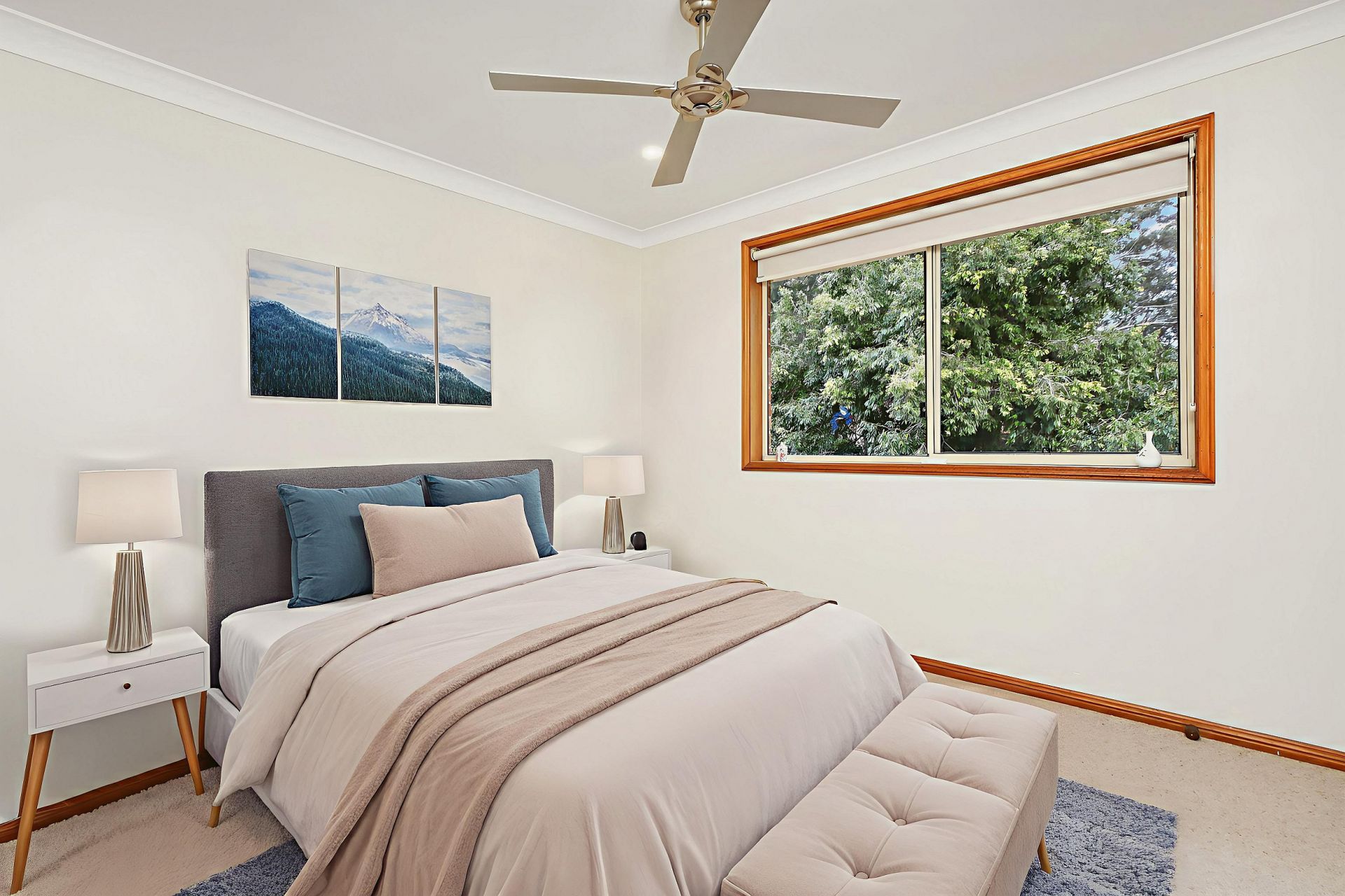 Bright and welcoming interiors feature fresh neutral tones, new flooring, and multiple zones designed for easy family living. The modern galley-style kitchen is equipped with quality appliances and opens to a covered deck overlooking established gardens; ideal for relaxed meals, entertaining, or quiet evenings.