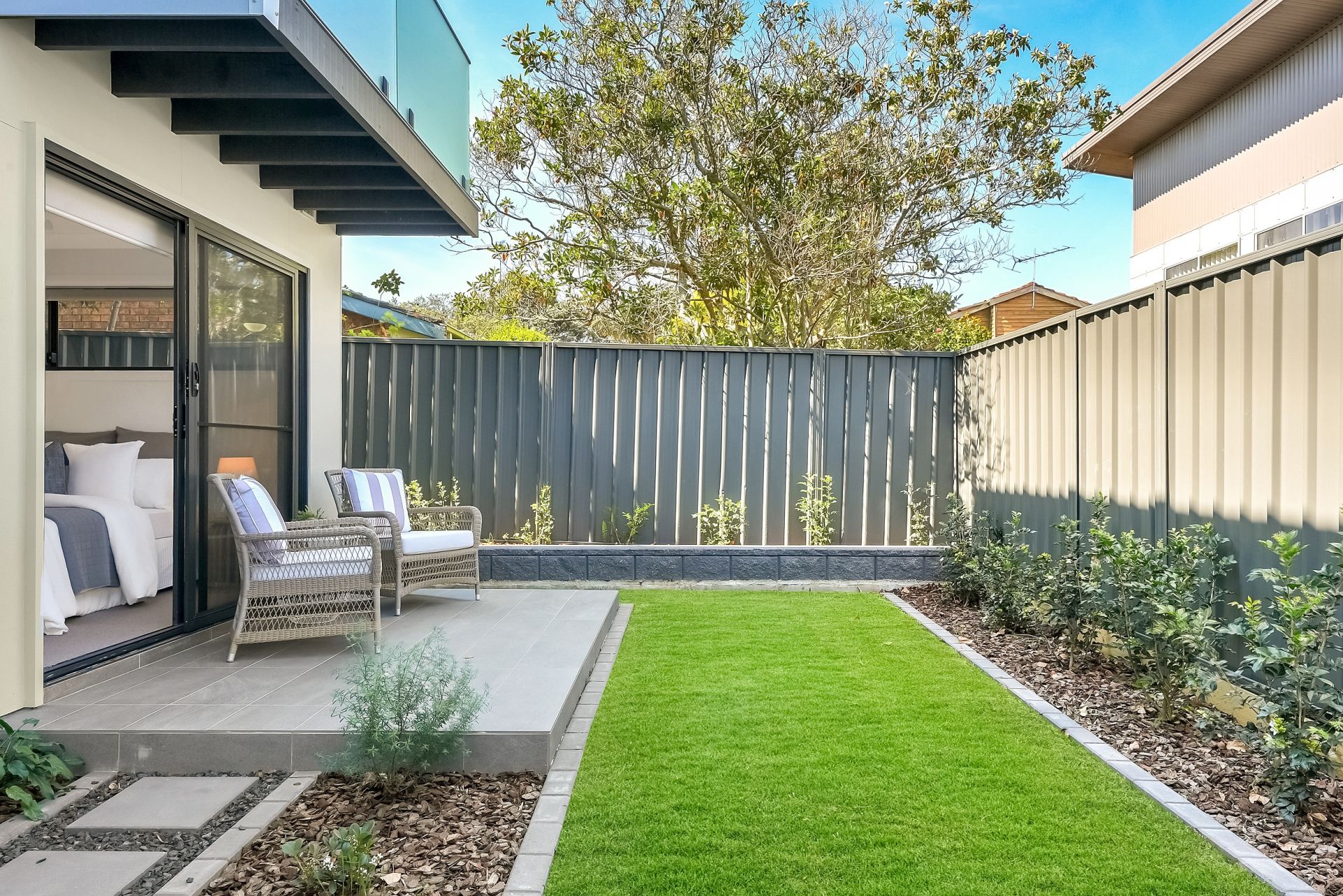 The contemporary kitchens are a highlight, fitted with quality appliances, stone benchtops, and designer finishes. Bedrooms are generously sized, all with built-in robes and ceiling fans, while beautifully landscaped private courtyards with a mix of grass and pavers offer a peaceful green retreat.