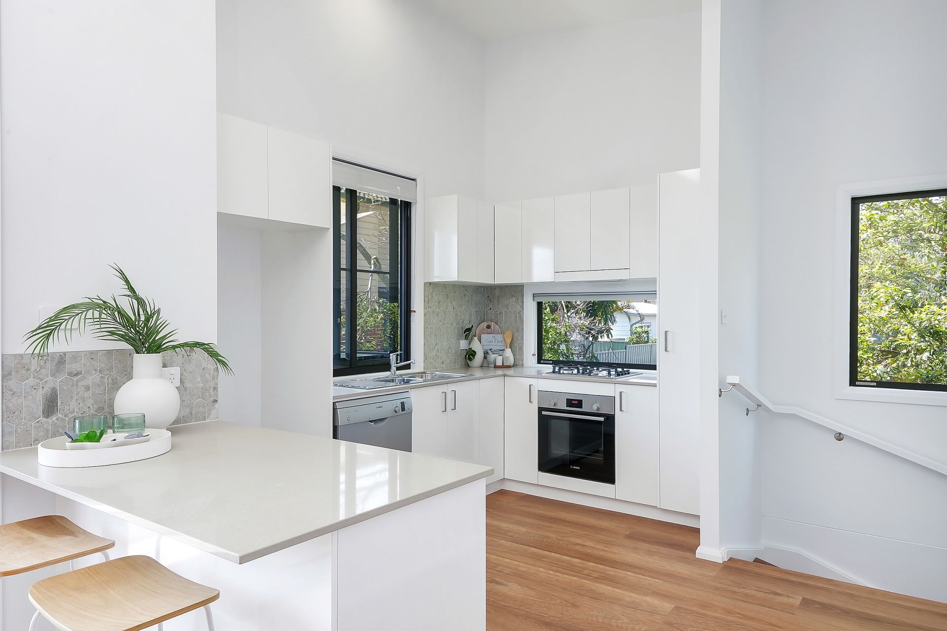 Each townhouse showcases a sleek, stylish façade and thoughtfully designed interiors, flooded with natural light. Open-plan living areas boast striking high raked ceilings, timber flooring, air conditioning, and seamless indoor-outdoor flow to sunny north-facing balconies - perfect for relaxing or entertaining.