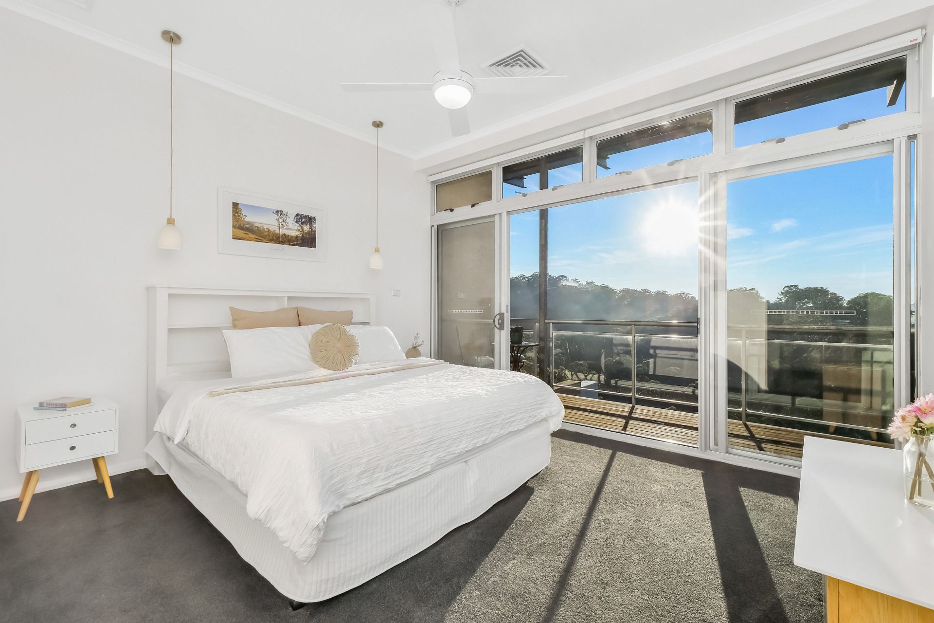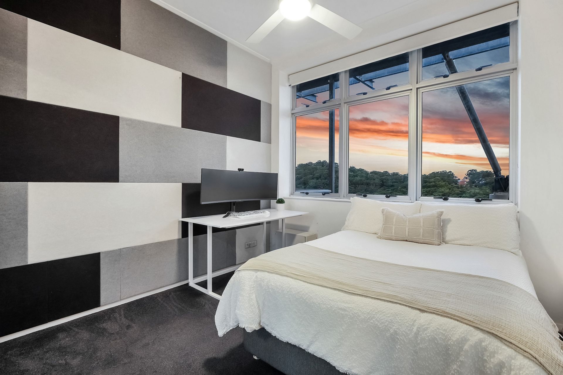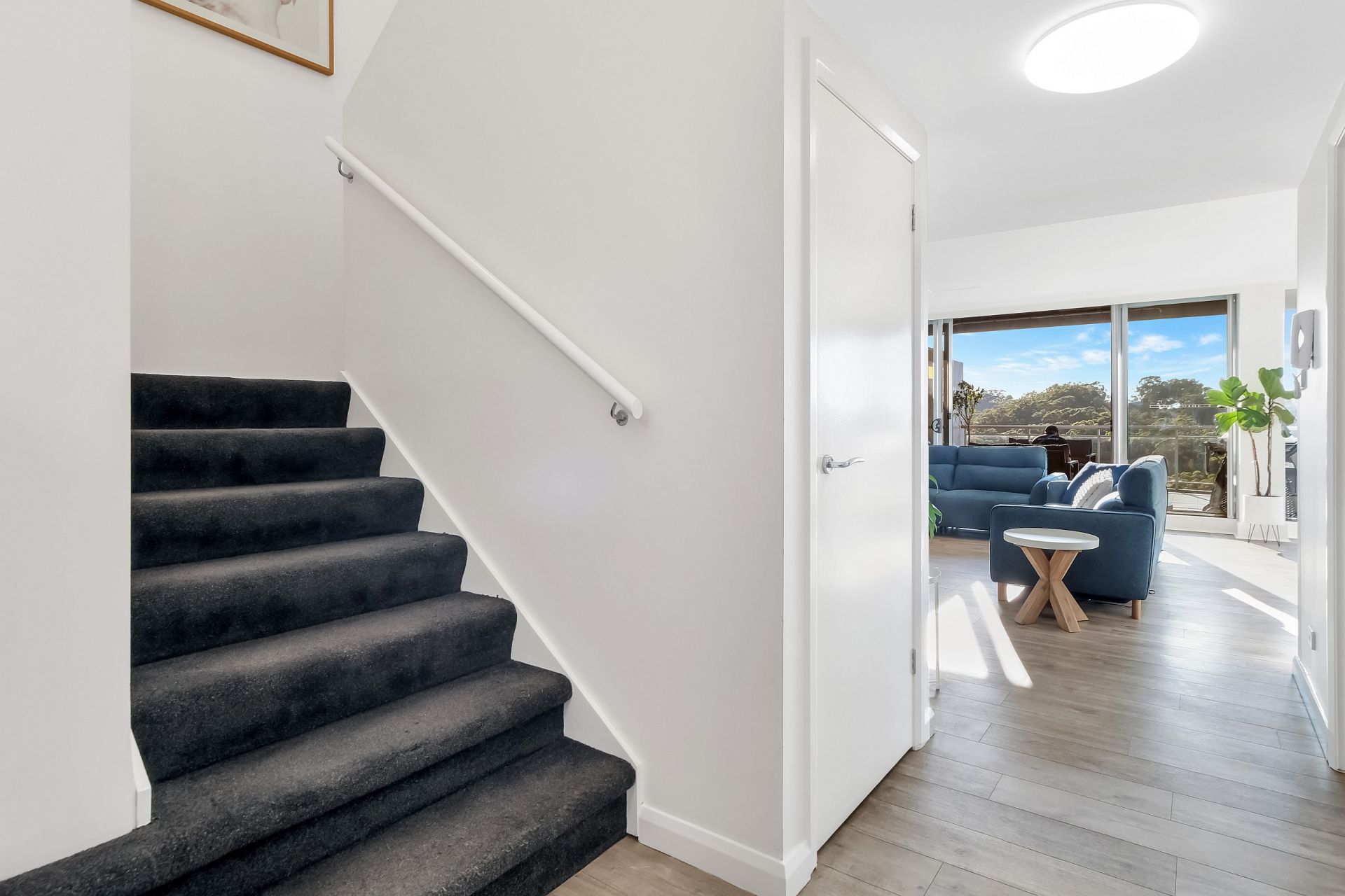 Designed for modern living, the penthouse is equipped with smart home features, including remote-controlled lighting, automated blinds in the living room, and a ducted air conditioning system that can be managed remotely. A secure, pet-friendly home, it even includes an electronic dog door, which can be removed if not required.