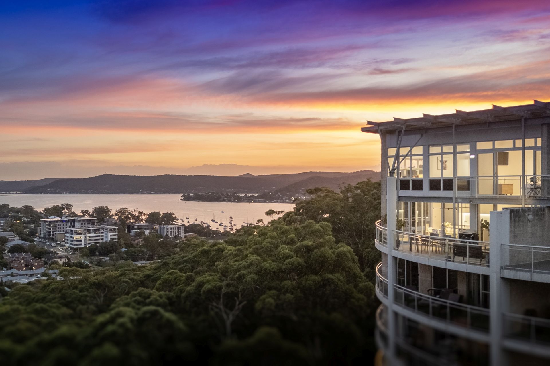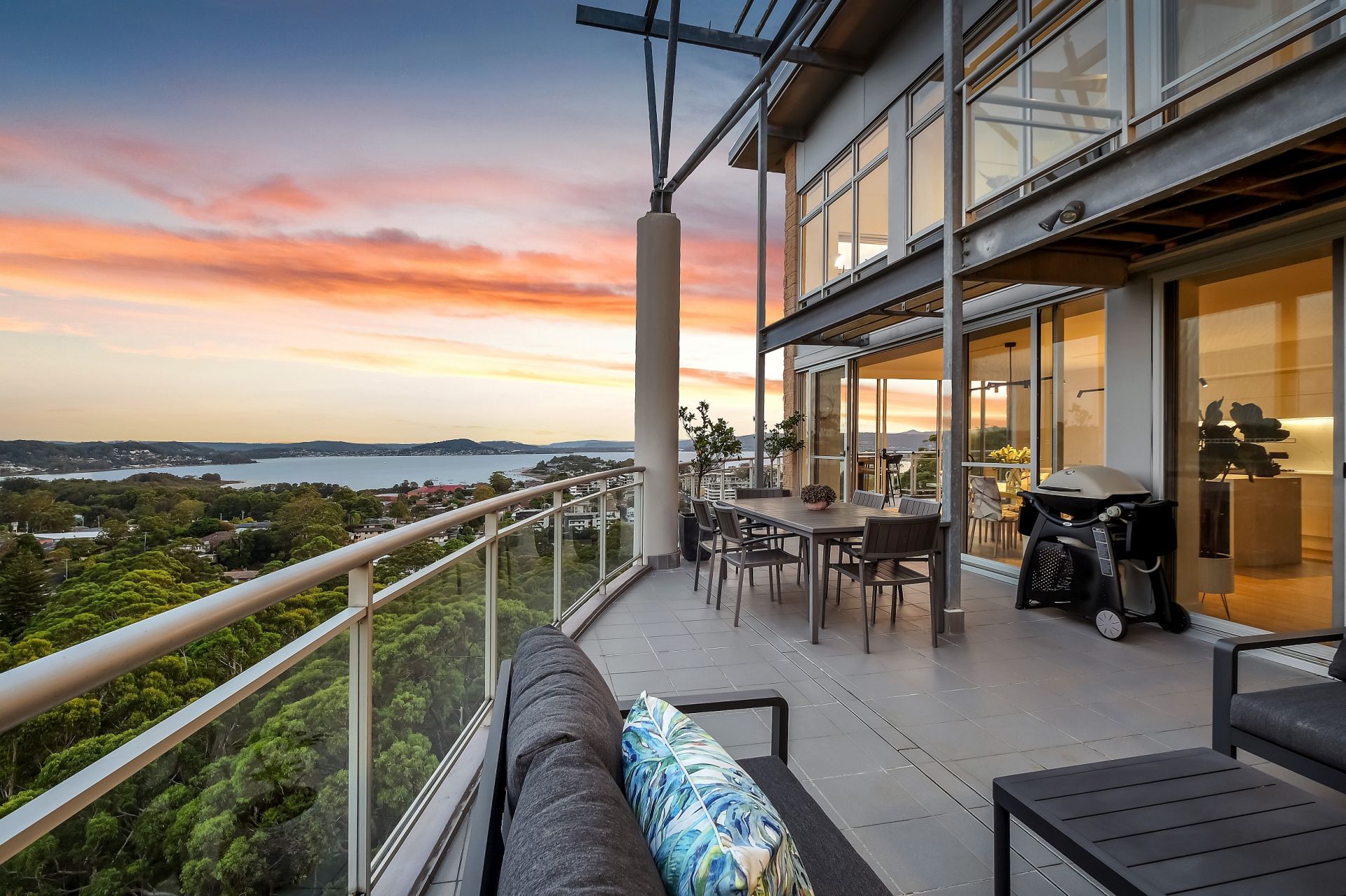 Perched high above Gosford, this exceptional two-level penthouse offers the perfect blend of exclusivity, sophistication, and breathtaking vistas. With only four residences on the top floor-three of which are occupied-privacy is a defining feature. The uninterrupted views across Brisbane Water will never be built out, ensuring a stunning outlook that remains yours forever.