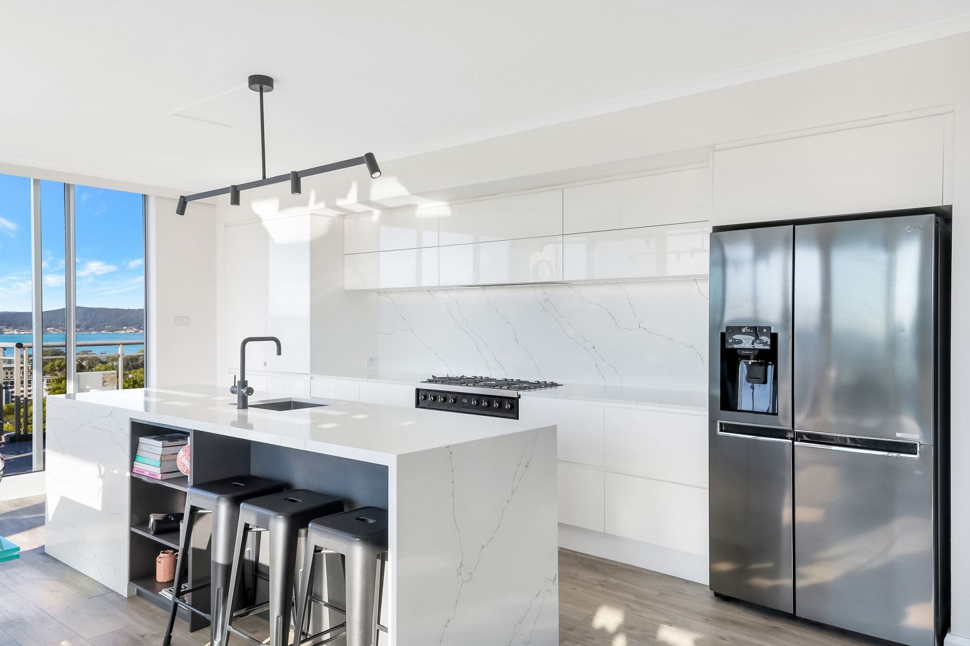 Inside, the thoughtfully designed interiors maximize both comfort and functionality. The gourmet kitchen is a standout, featuring electronic push-to-open cabinetry, soft-close drawers, a half butler's pantry, and a dedicated wine fridge seamlessly integrated into the island bar. The space is both stylish and practical, with a Zip tap for instant hot water and a two-drawer dishwasher for convenience.