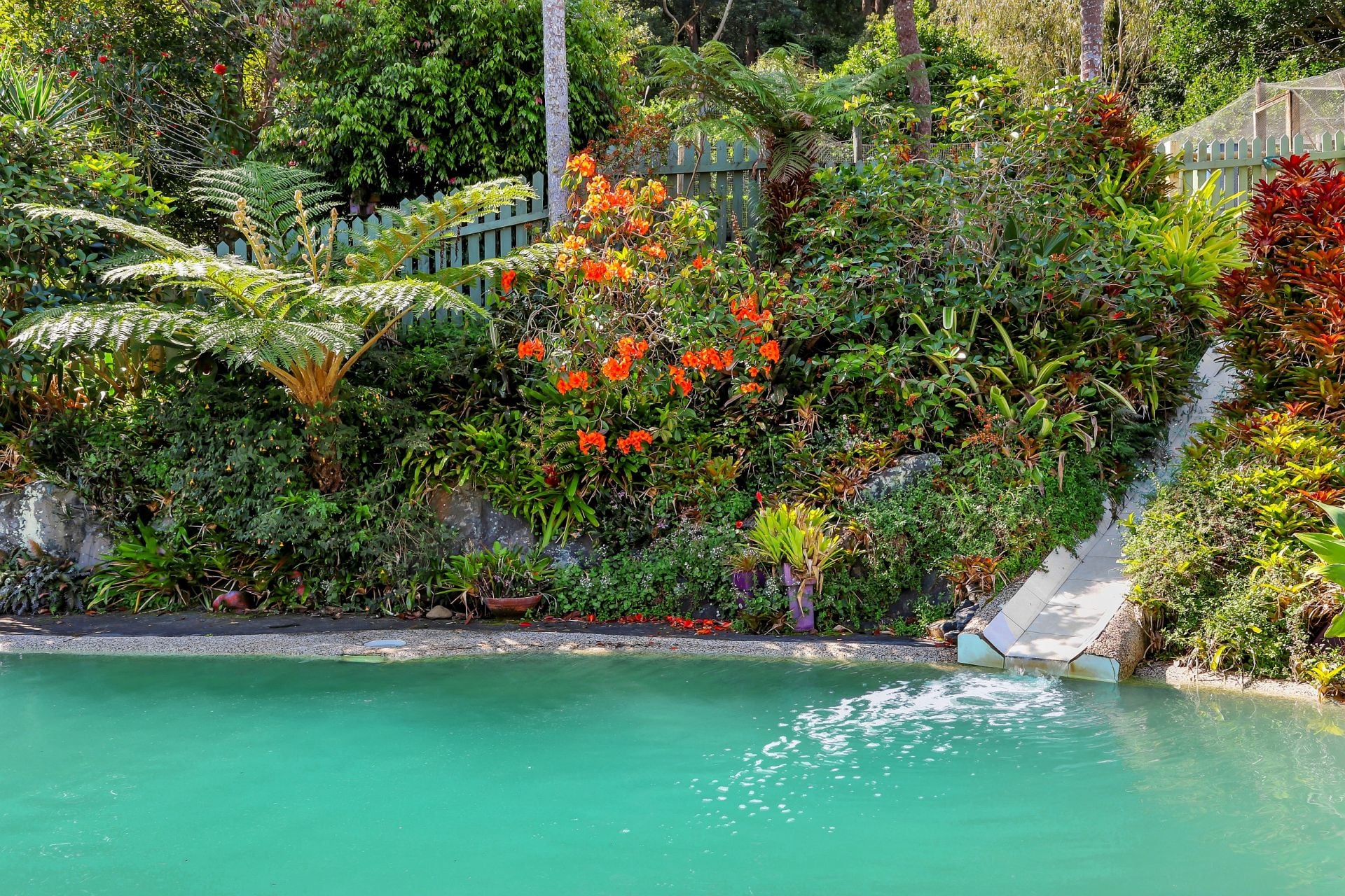In addition to the gardens with ornamental and native plantings, there is an established orchard providing an abundance of citrus fruit and nuts and a vegetable garden with everything you need to accompany your dinner, or to make a scrumptious salad.