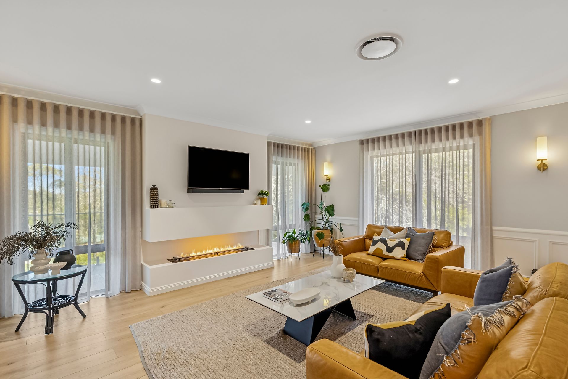 You are spoilt for choice with family relaxation zones and open plan areas for entertaining with friends. A cosy formal lounge with a bespoke Planika biofuel fireplace is set at the front of the home along with a tiled balcony running the entire length of the residence offering a pretty outlook and a peaceful space to unwind or entertain.